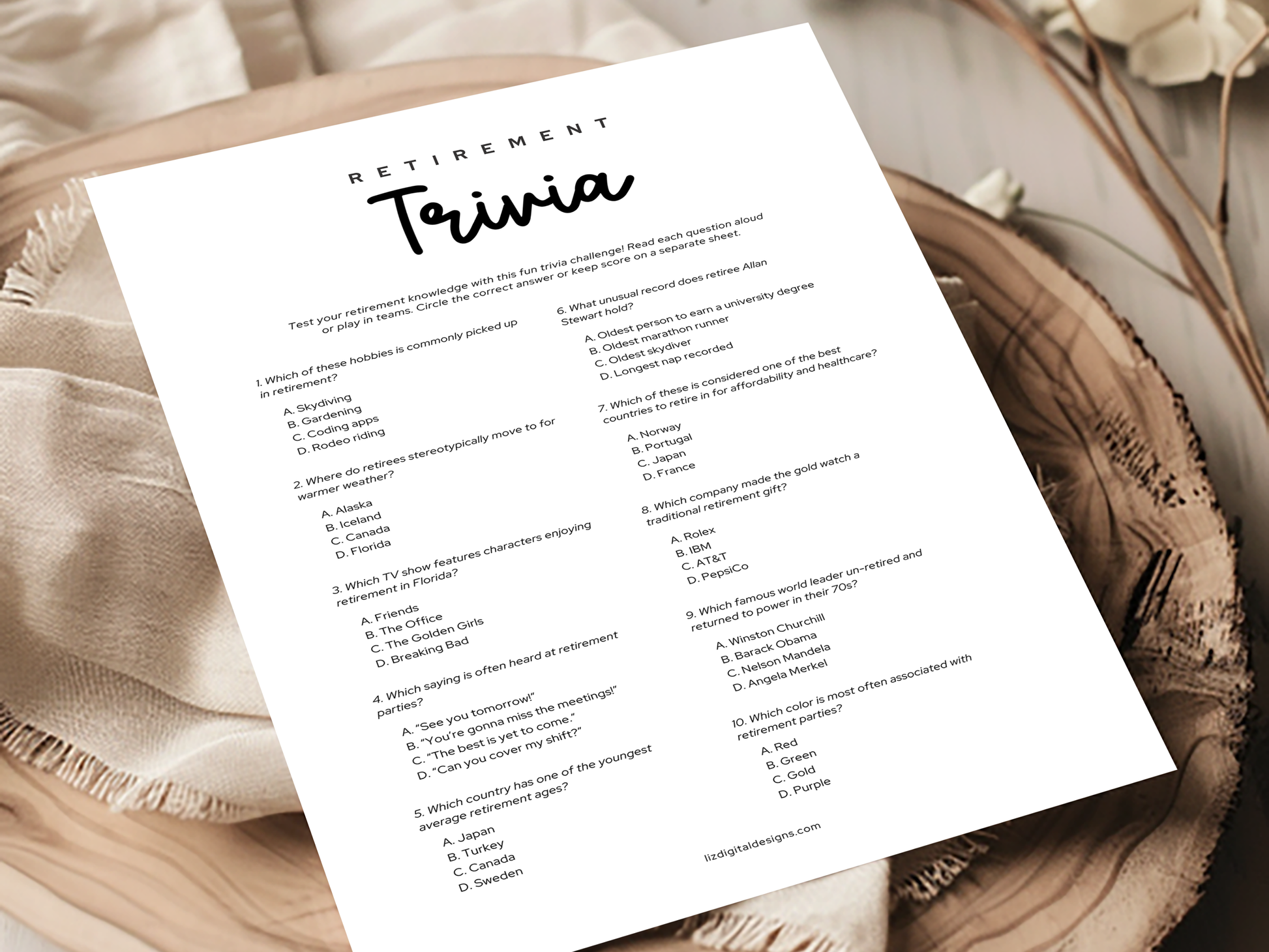 Retirement Party Game - Trivia