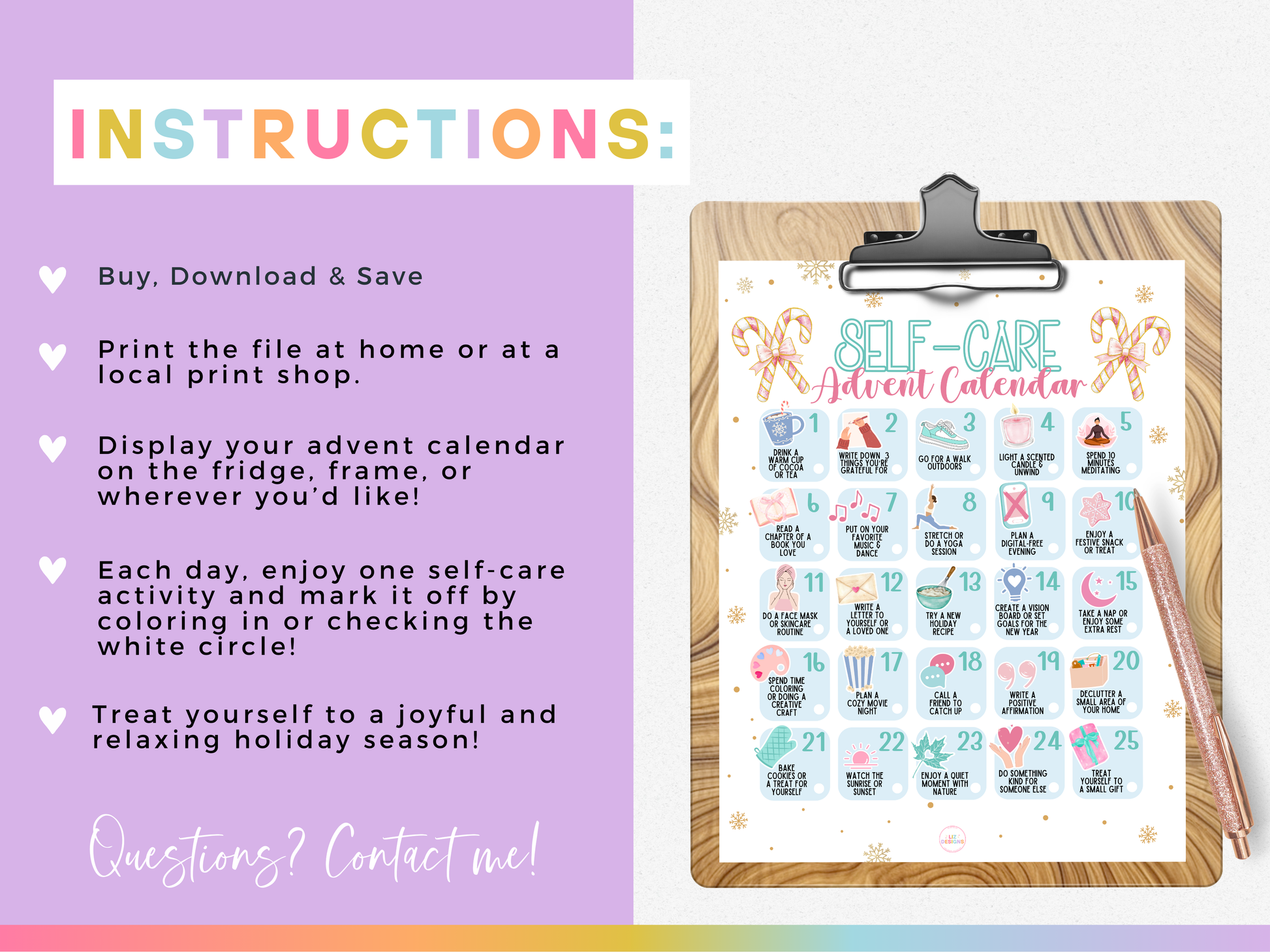 π Β Mark off a new self-care activity each day as you count down to Christmas and prioritize YOU!