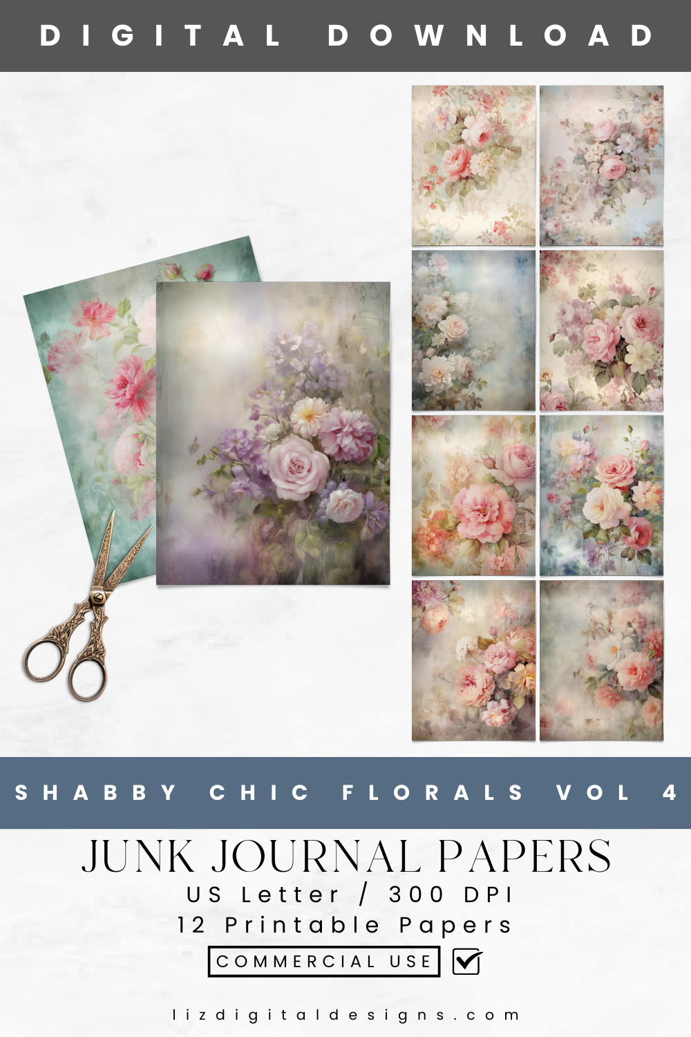 Shabby Chic Florals Vol 4 - Junk Journal & Scrapbooking Paper