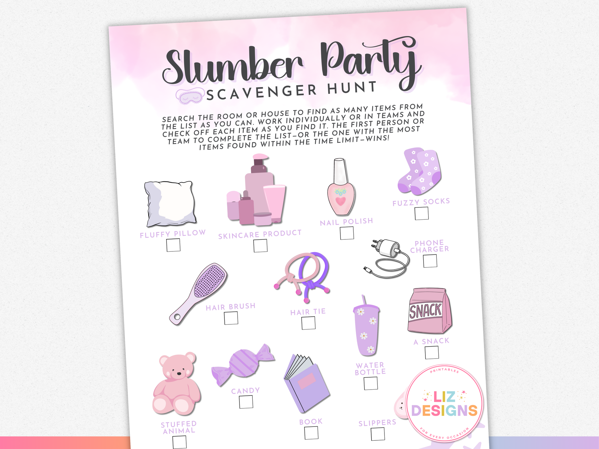 Check out the πππππππ πππππ ππππ ππππ, which includes this scavenger hunt and ππ ππππ’ππ’π¨π§ππ₯ π ππ¦ππ¬ for endless fun! Perfect for creating the ultimate sleepover experience.Β