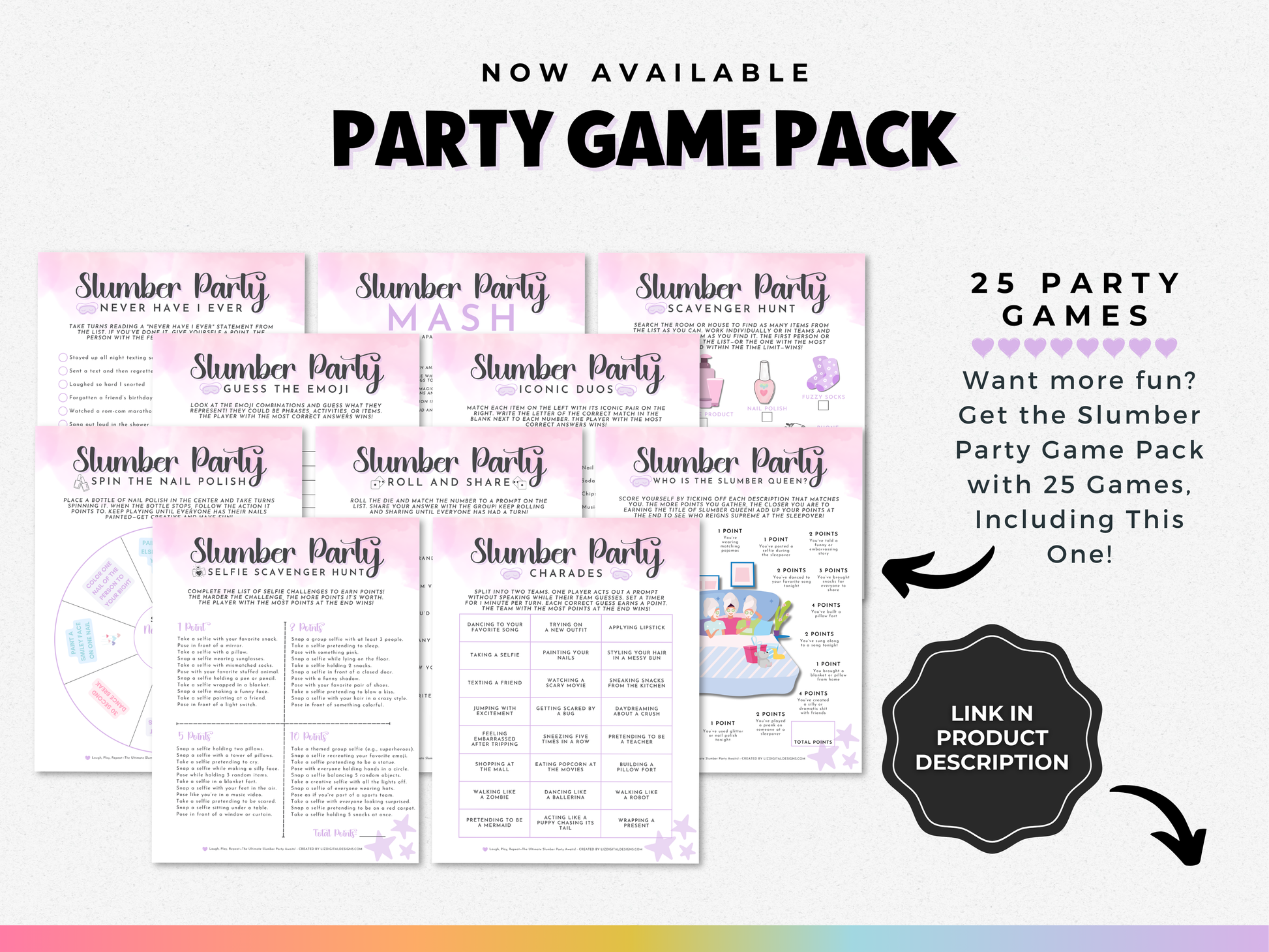 Make your next slumber party unforgettable with the printable πππππππ πππππ πππππππππ ππππ! Perfect for teens, tweens, and the birthday girl, this fun and engaging party game will have everyone laughing!Β
