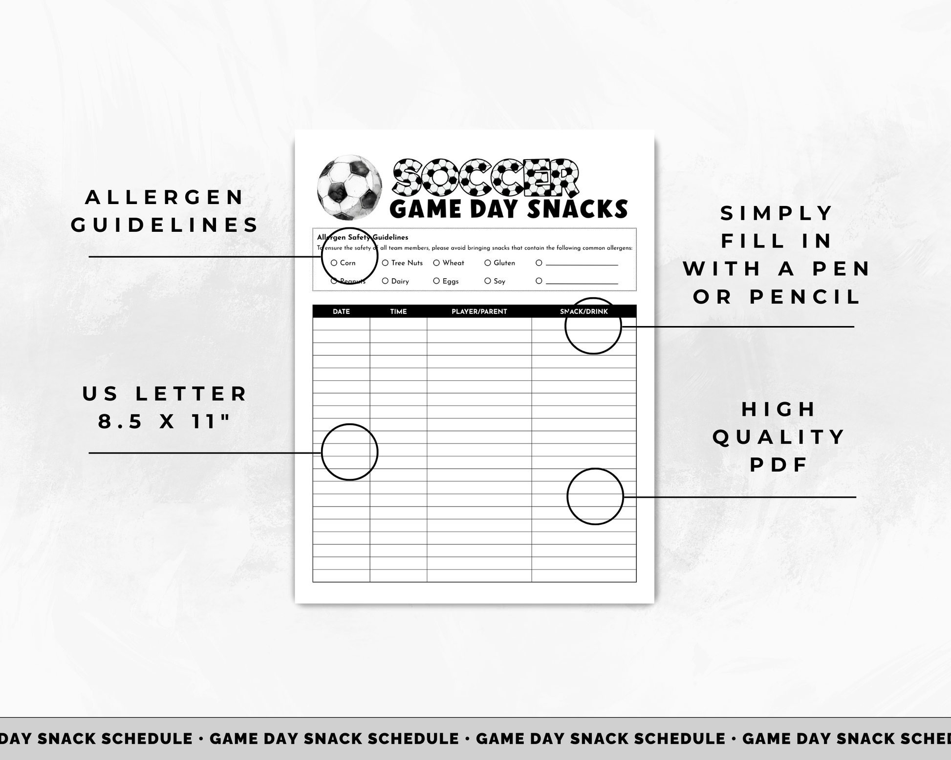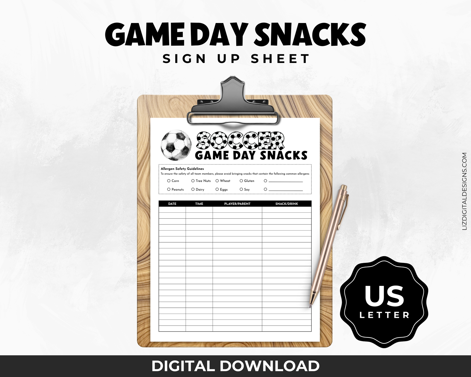 Organize your team's snack duty effortlessly with the ππππππ ππππ πππ ππππππ ππππ ππ πππππ! This simple and handy printable is perfect for youth sports teams, school sports programs, community leagues, coaches and team parents. This snack sign up sheet includes a dedicated section for common allergens to ensure every player stays safe. Cheers to stress-free snack duty!