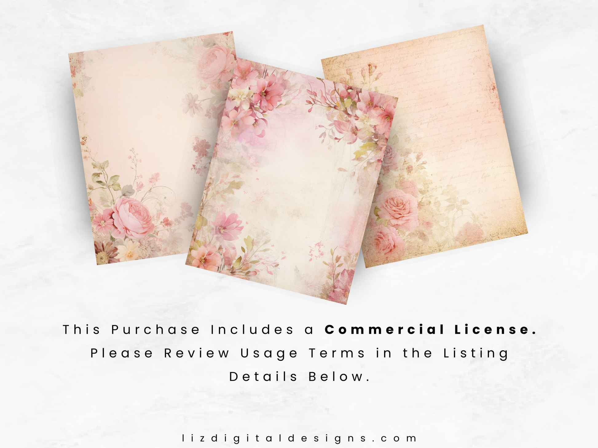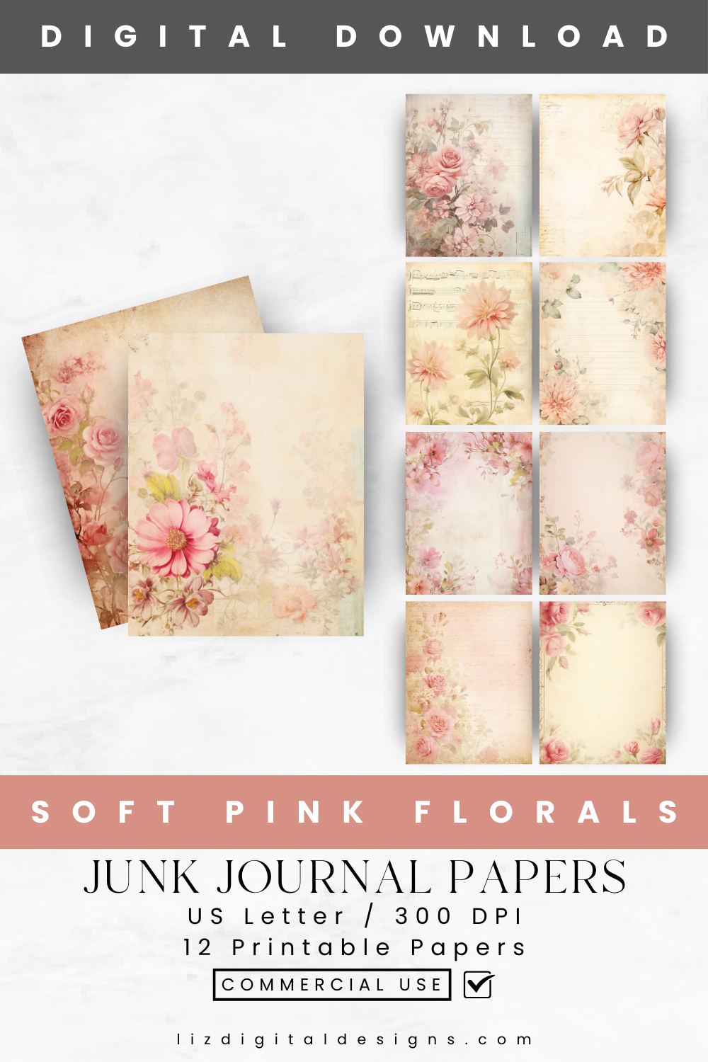Soft Pink Florals - Junk Journal & Scrapbooking Papers