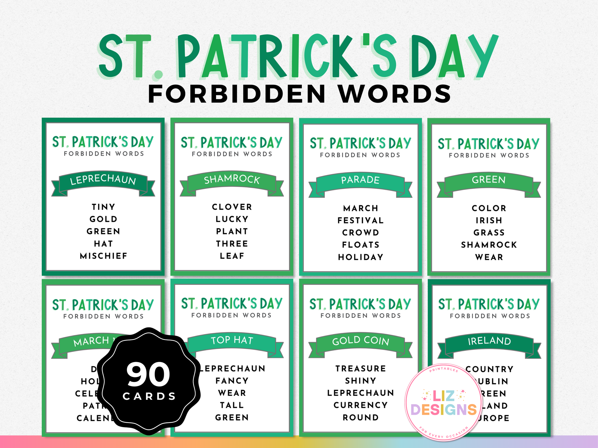 💜 90 ready-to-play game cards filled with St. Patrick's Day-themed prompts