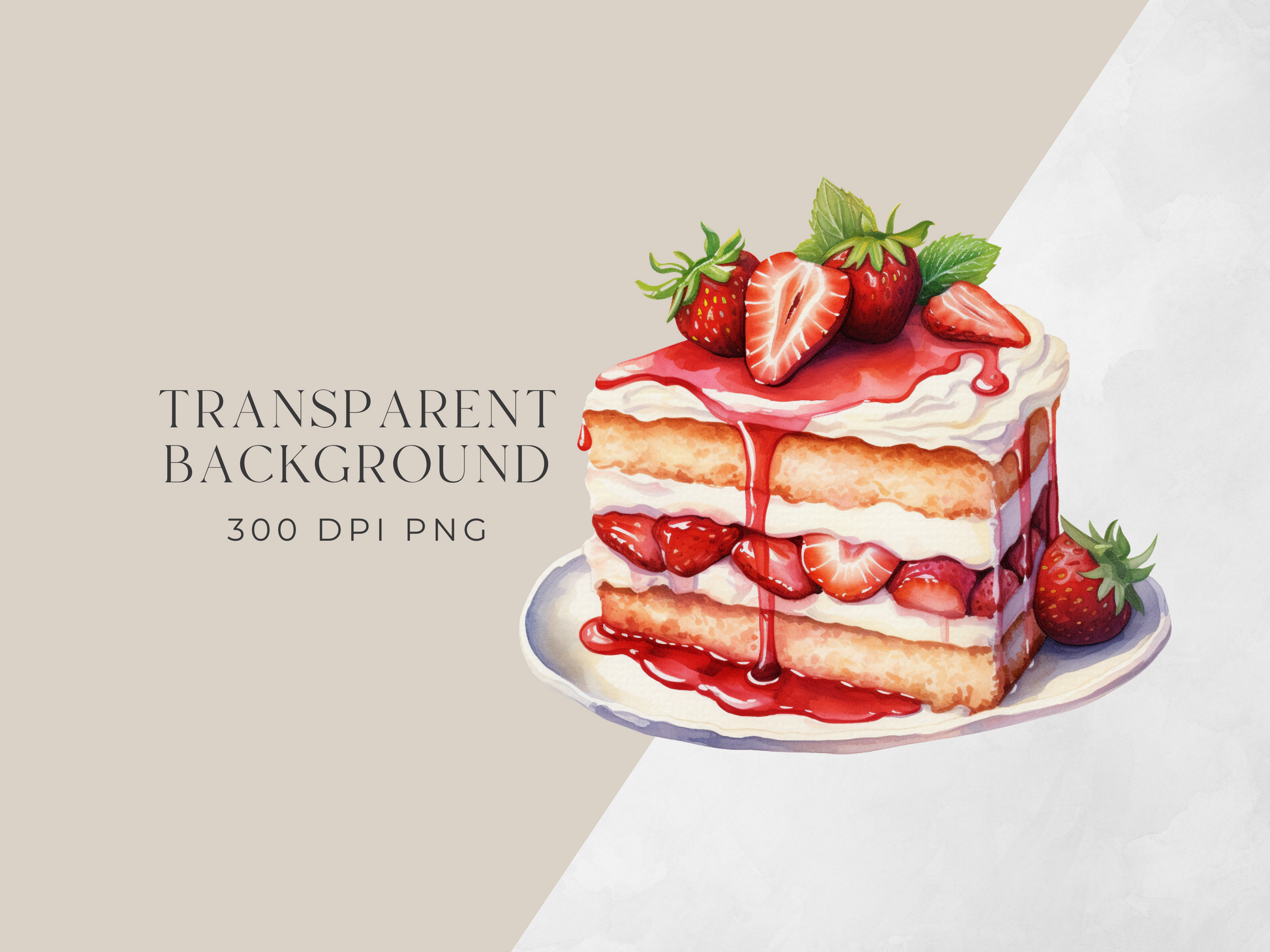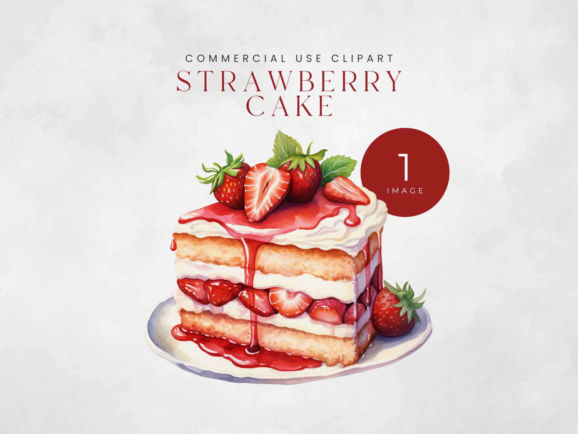 This SINGLE Watercolor Strawberry Cake Clipart is perfect for food-related designs such as greeting cards, invitations, stickers and more!