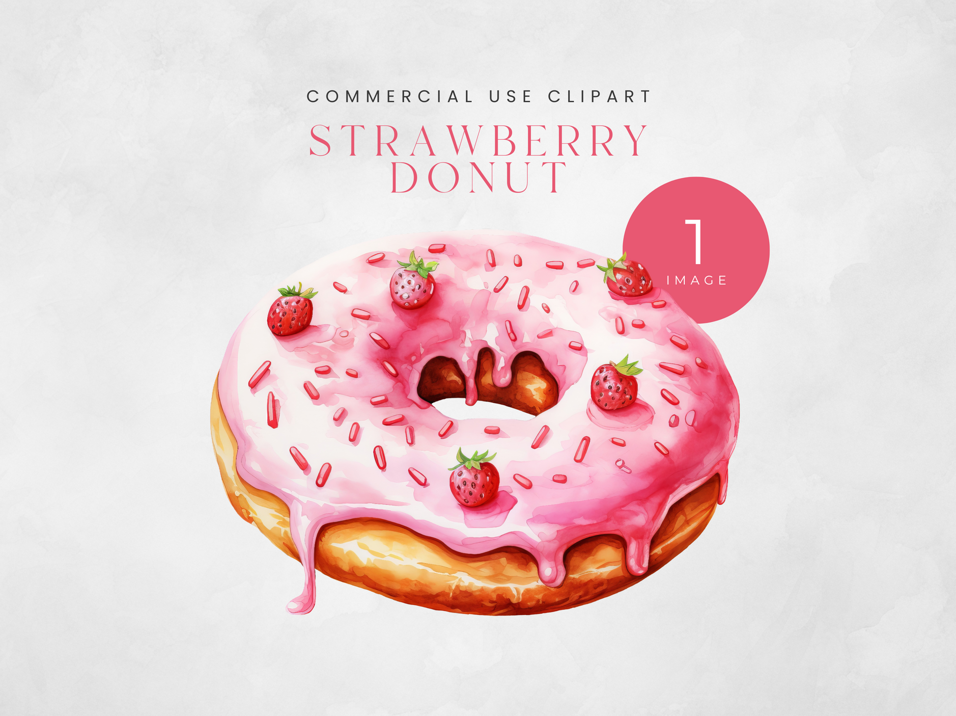 This SINGLE Pink Strawberry Donut Clipart is perfect for adding some sweet and colorful flair to all of your food related projects such as greeting cards, invitations, stationery, decor, stickers, recipe books, food blogs, digital designs and more!