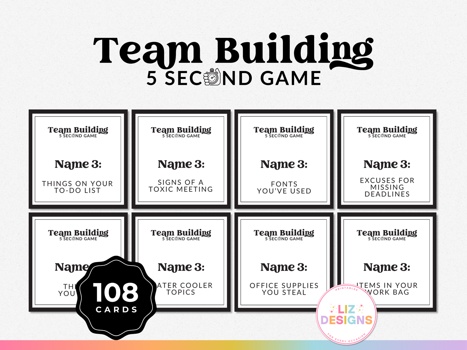 π 108 unique βName 3β game cards β fast, funny, and workplace-friendly