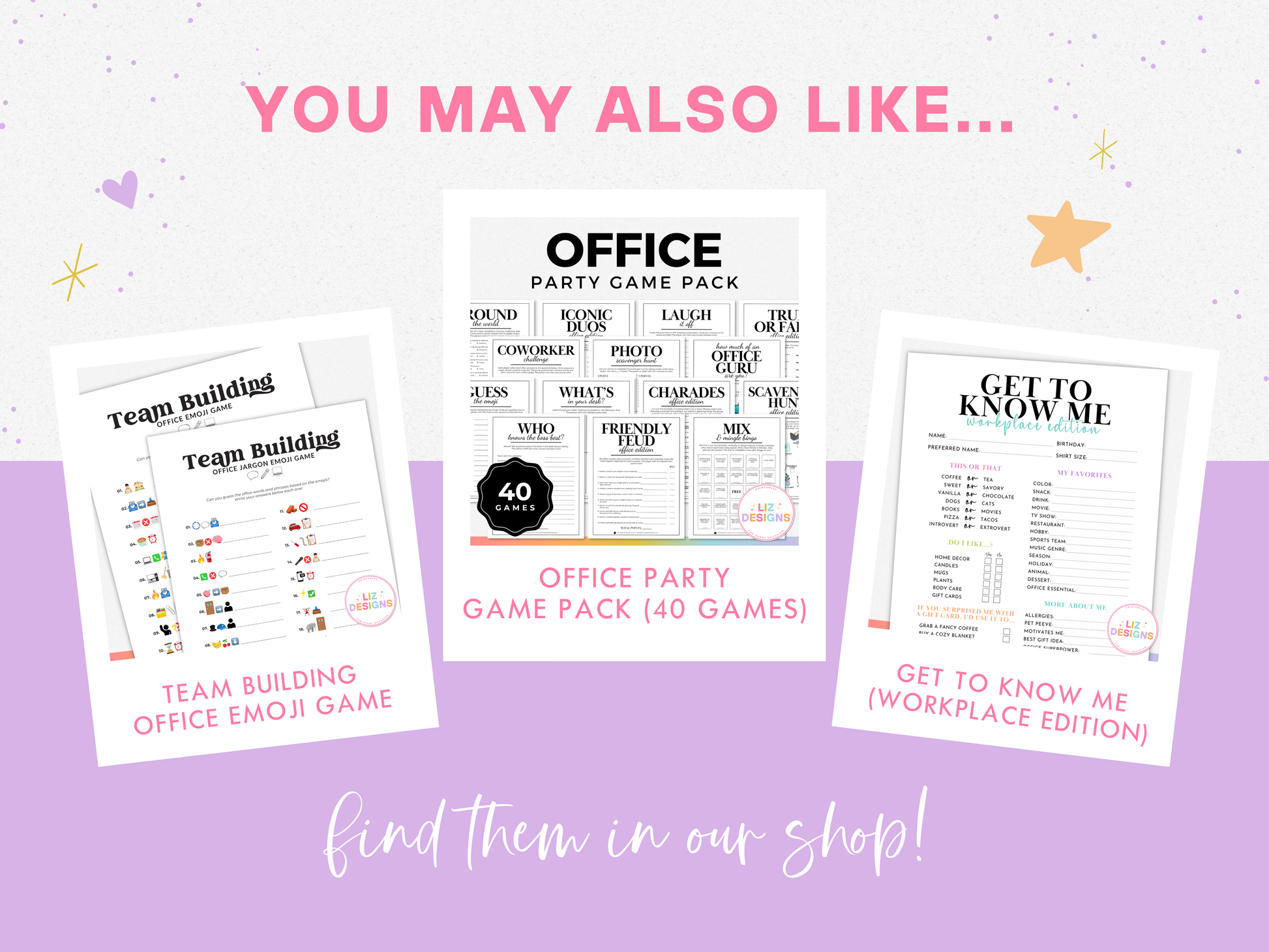 Planning an office party? π Look no further! TheΒ ππ π πππ πππππ ππππ ππππ has everything you need to keep your coworkers laughing and engaged with 40 fun and easy-to-play games!Β