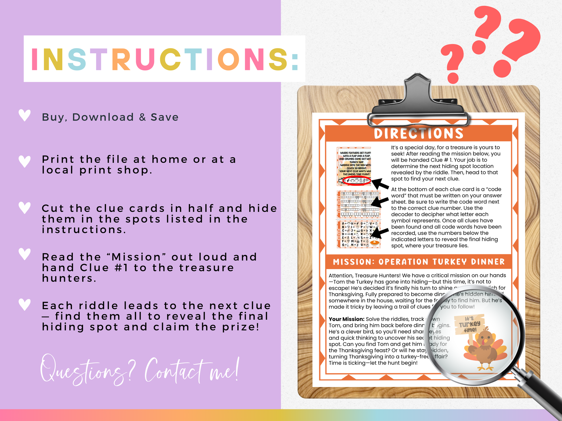 ππππ πππππππ is to solve each riddle, track down Tom, and bring him back before Thanksgiving dinner begins. With each clue, you'll get one step closer to uncovering Tomβs secret hiding spot. This fun and engaging activity will add a touch of adventure and excitement to your Thanksgiving festivities!