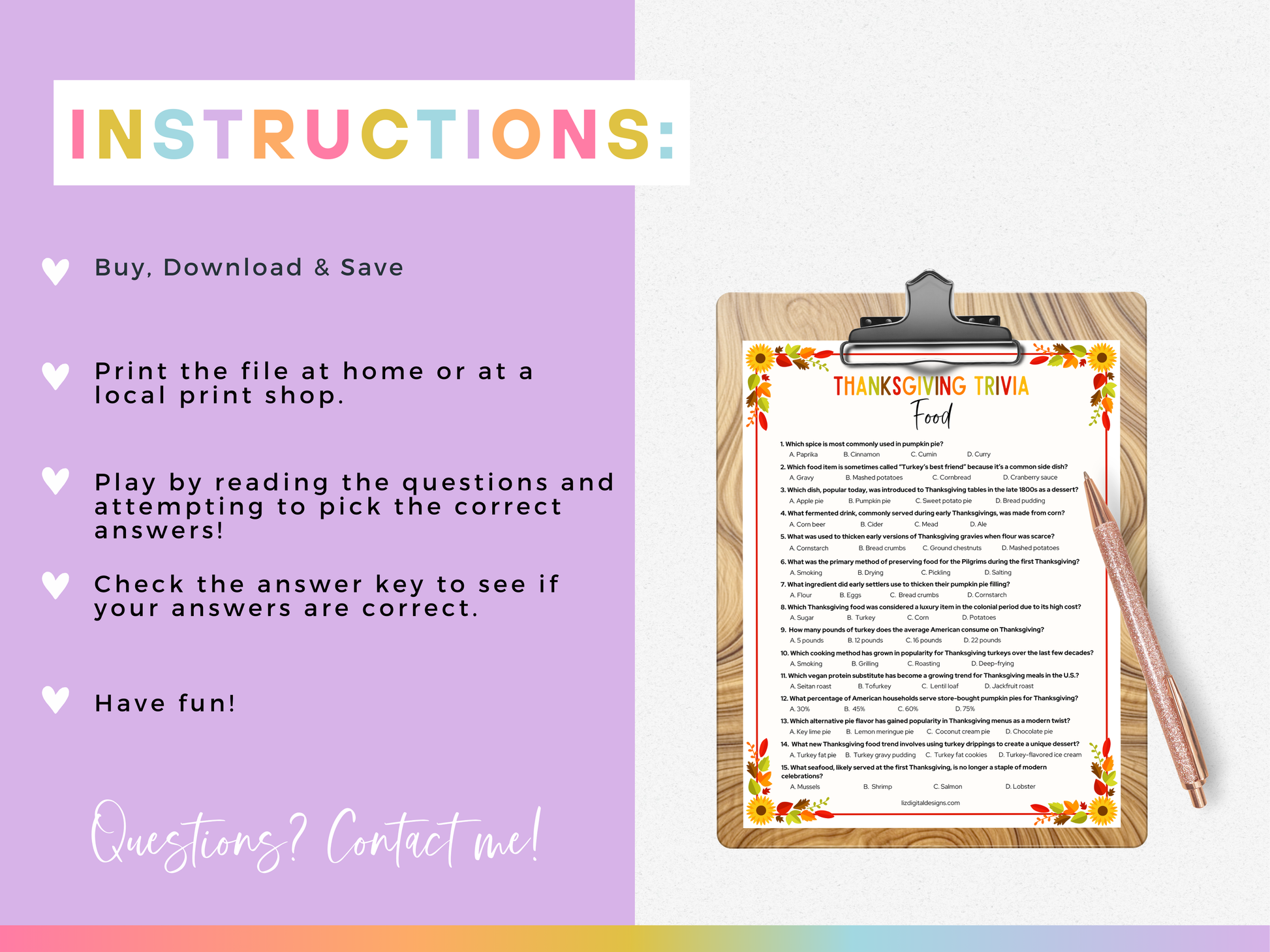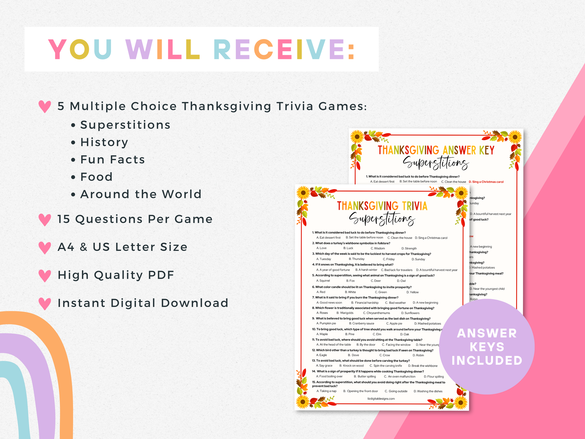 Make your Thanksgiving gathering unforgettable with the ππππππππππππ ππππππ ππππ ππππππ, featuring 5 unique trivia games! Each game comes with 15 fun and challenging questions that will test your knowledge of Thanksgiving from all angles. Whether you're hosting a family dinner, Friendsgiving, or holiday party, this trivia set is the perfect way to engage and entertain your guests.