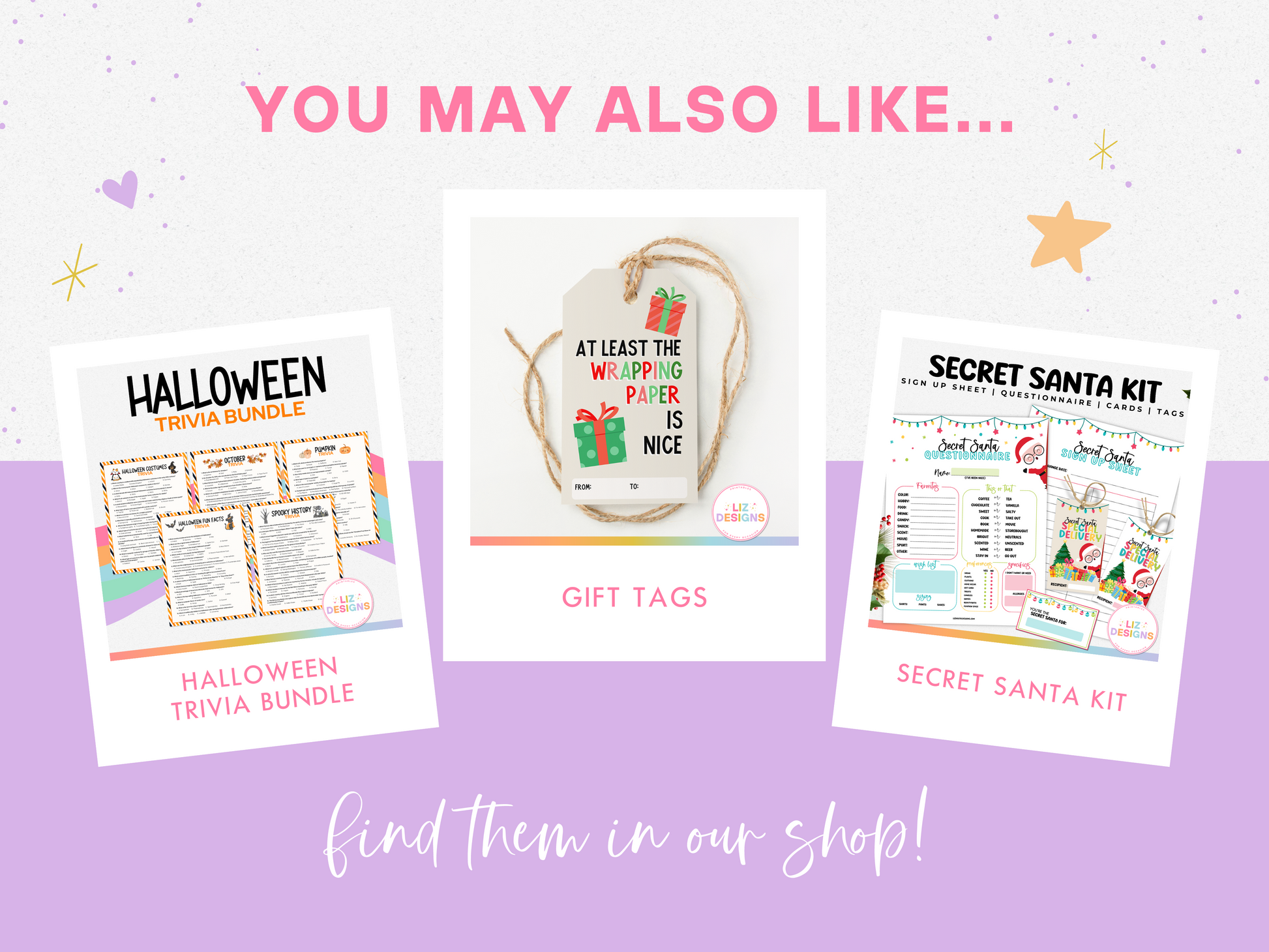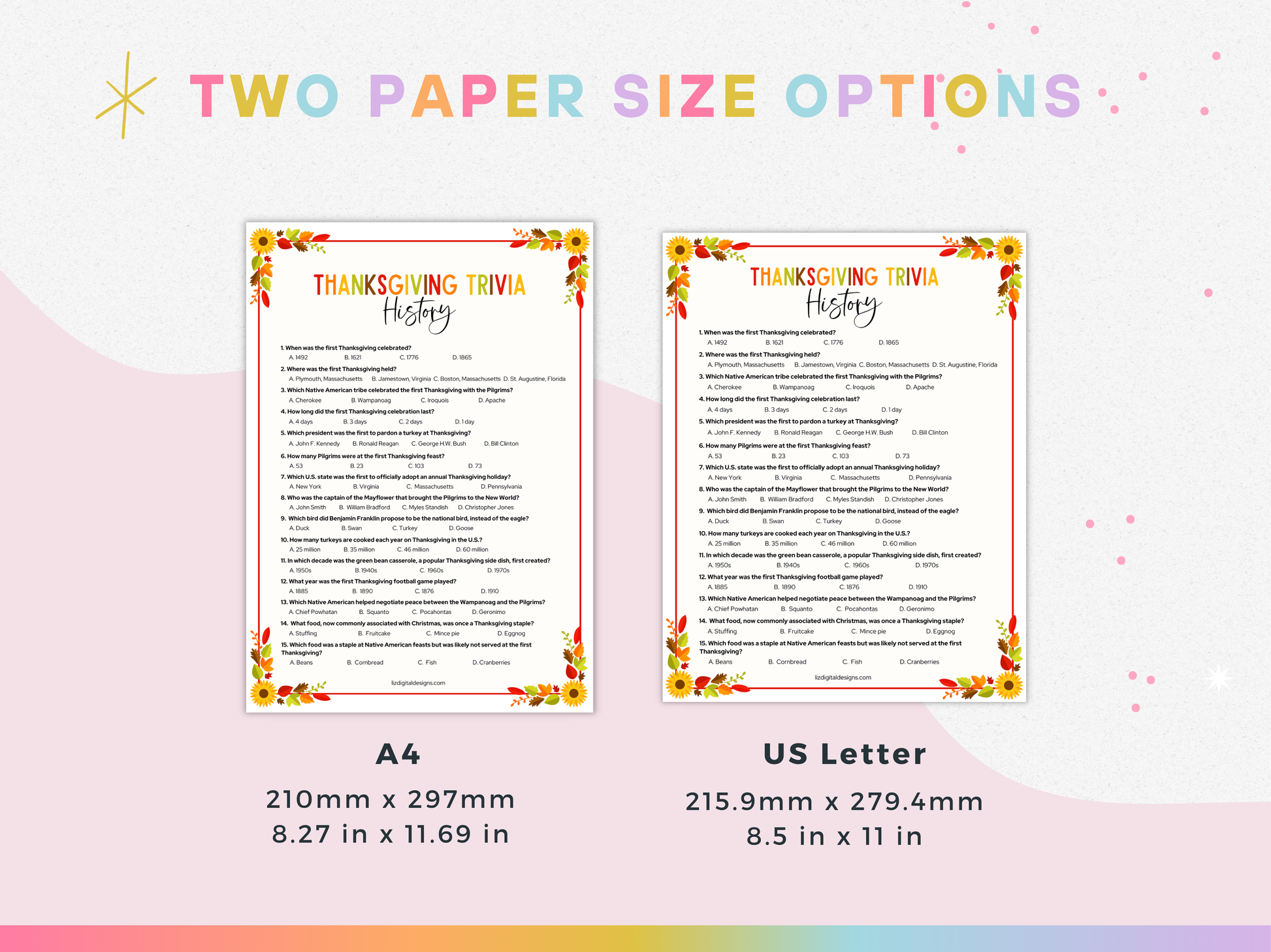 π Group Play: Split your guests into teams or have everyone play individually. Perfect for a competitive trivia showdown at Thanksgiving family gatherings, holiday office parties, classroom activities, bar/pub trivia night and more!