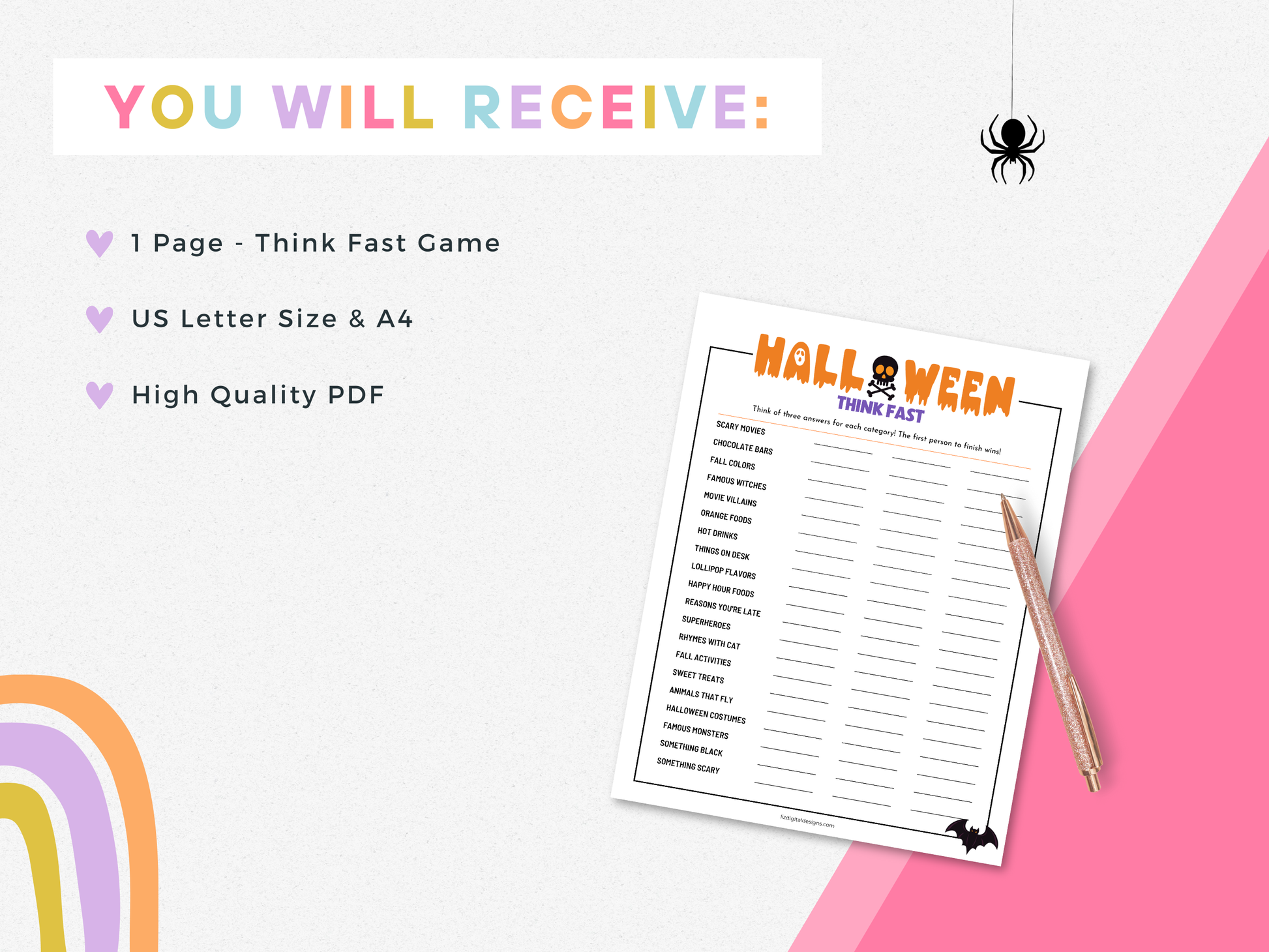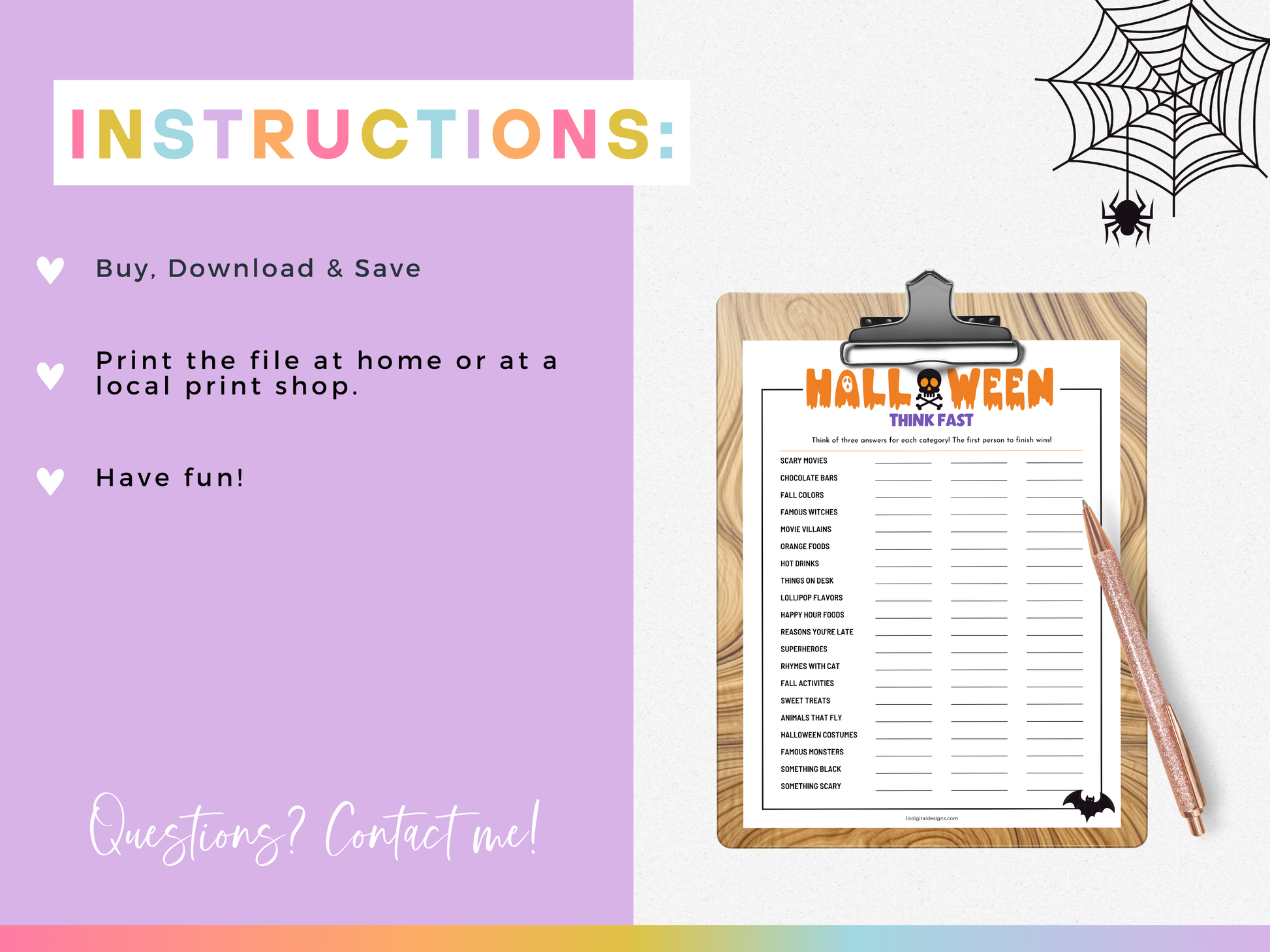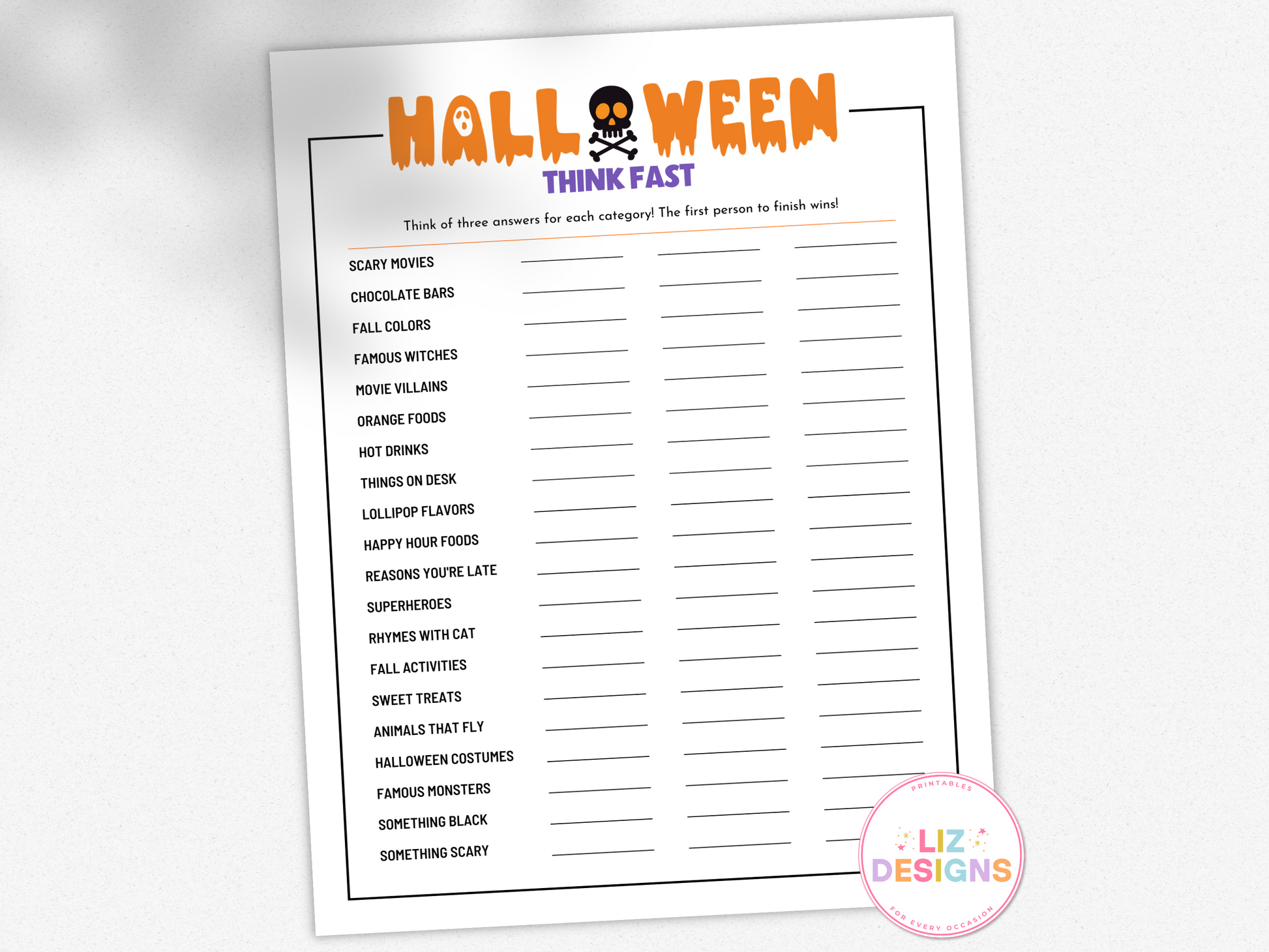 π Let guests race against the clock to fill in answers that match the Halloween categories!