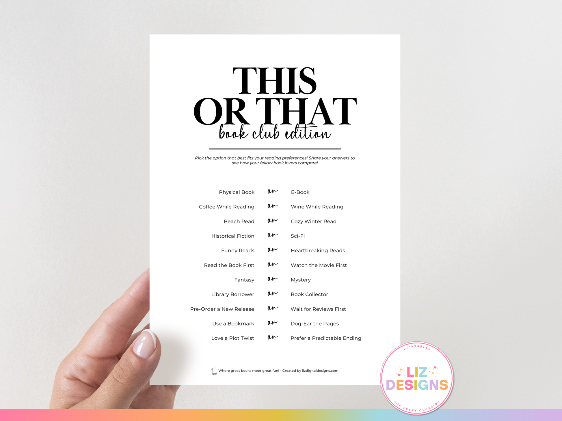 Break the ice and spark conversation at your next book club with this printable ππππ ππ ππππ - ππππ ππππ πππππππ! er you're kicking off a new reading group or adding a fun twist to your regular meetings, this game gets everyone chatting about their favorite (and not-so-favorite) bookish habits. Perfect as a book club icebreaker, conversation starter, or low-pressure game for readers of all kinds.