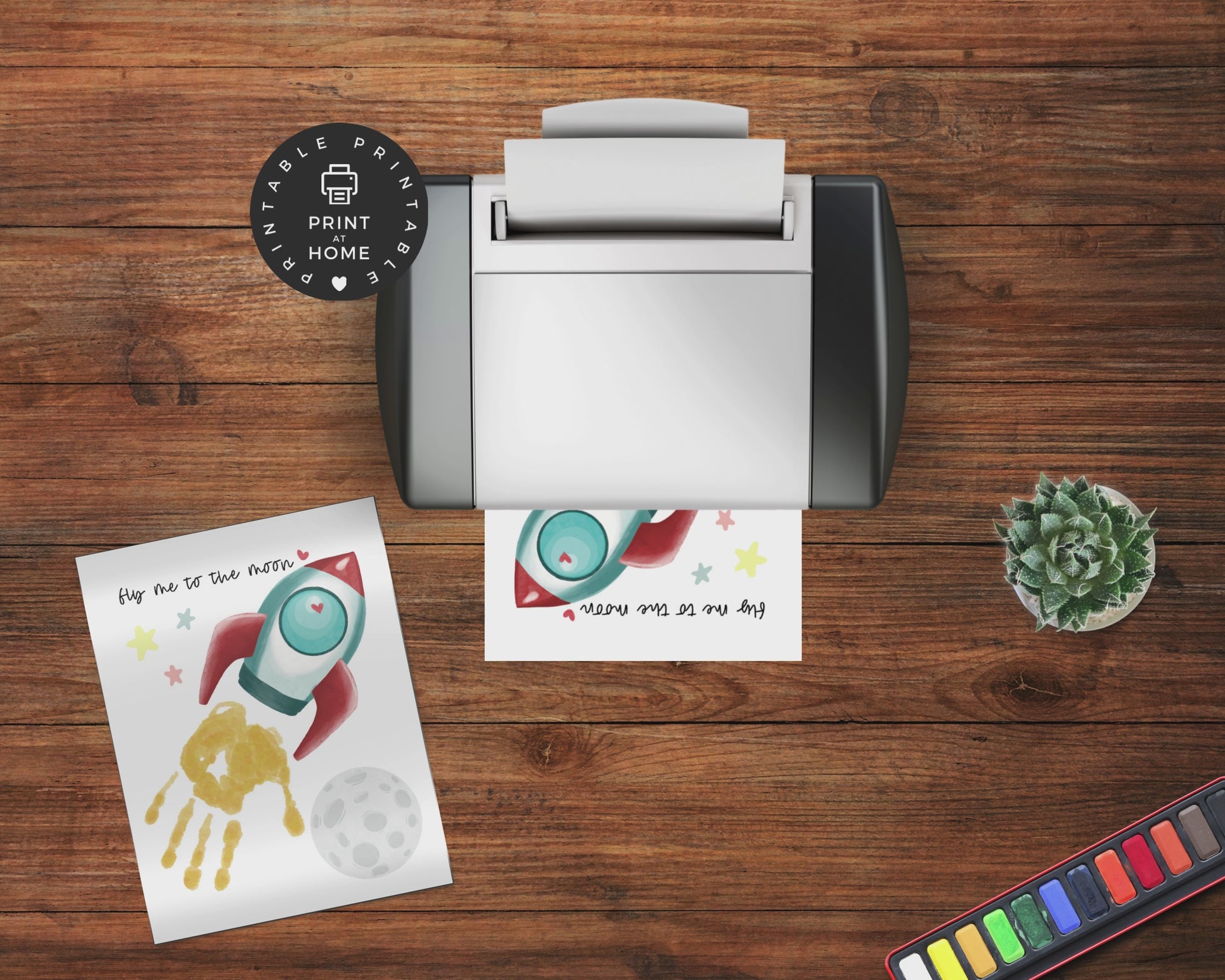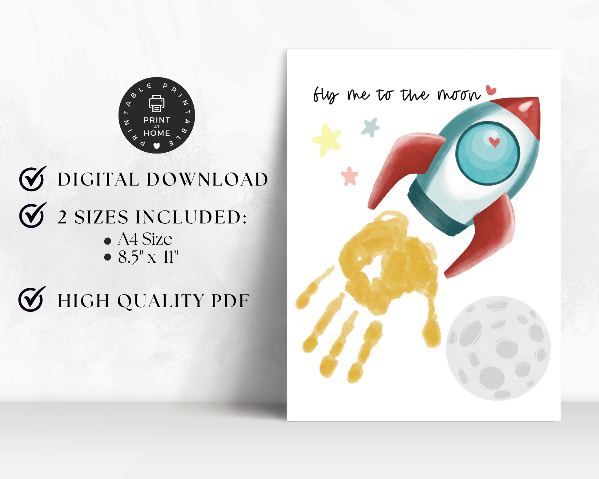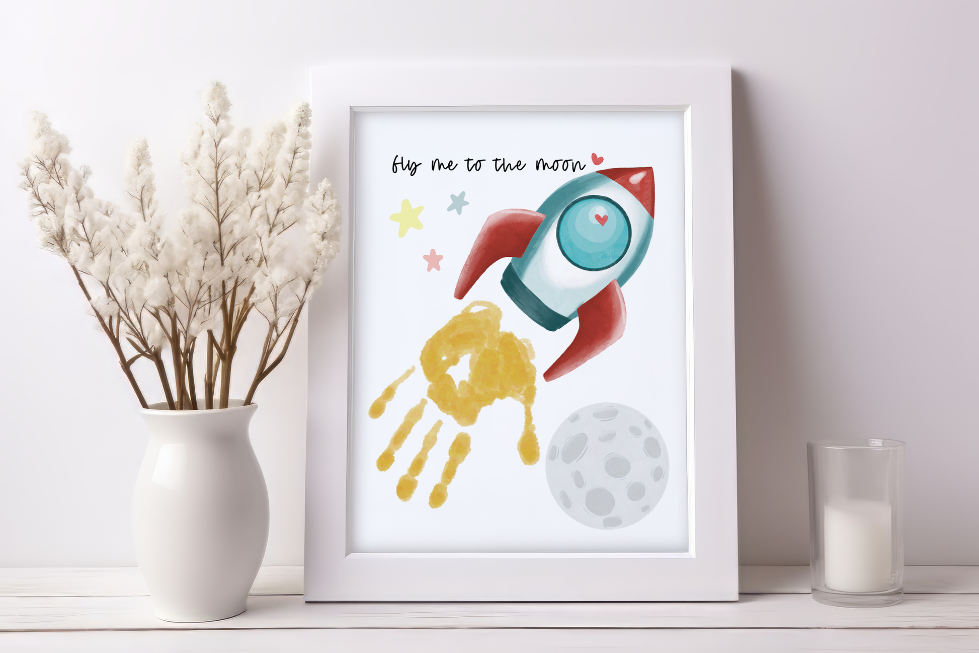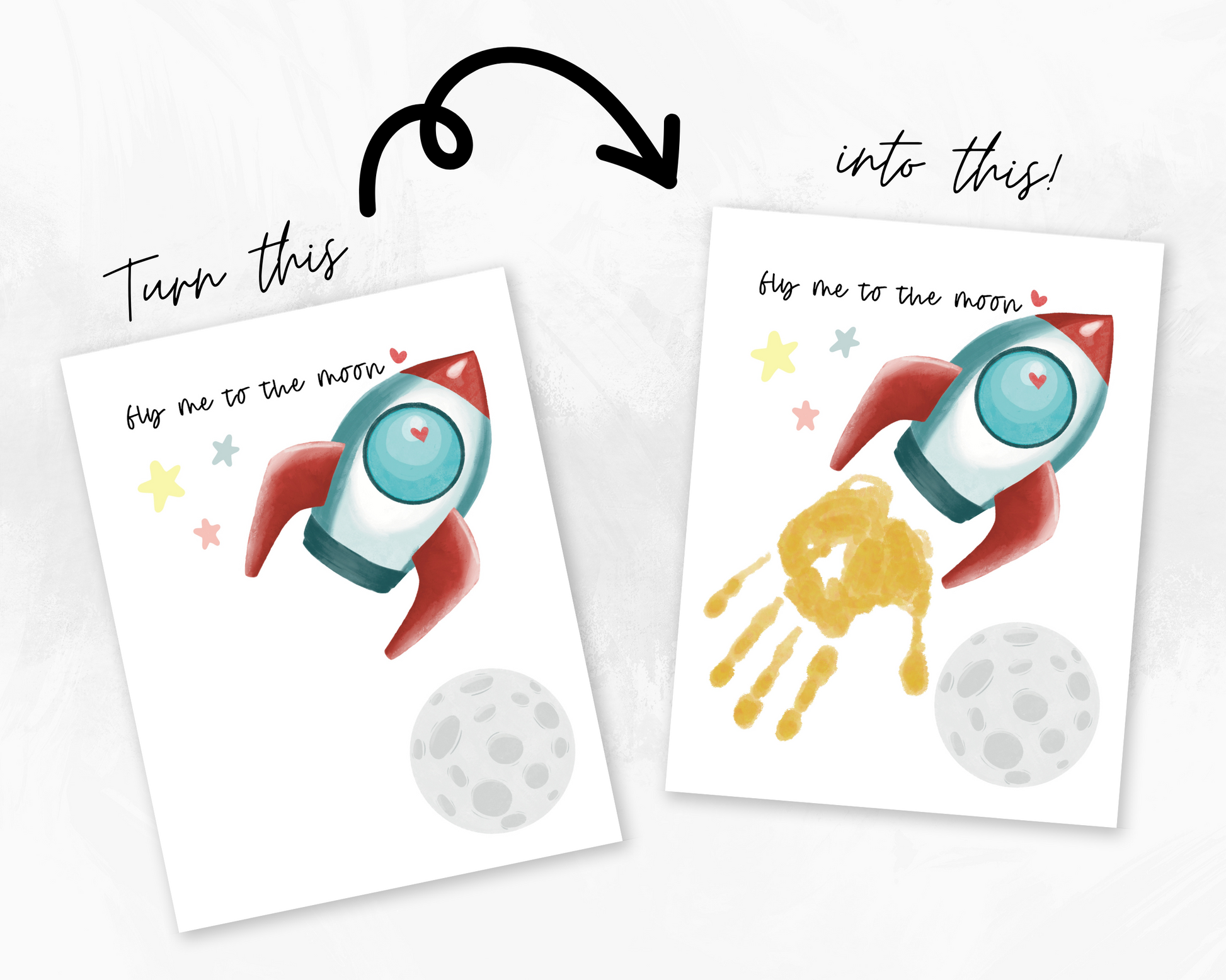 Valentine's Day - Fly Me to the Moon Handprint Art