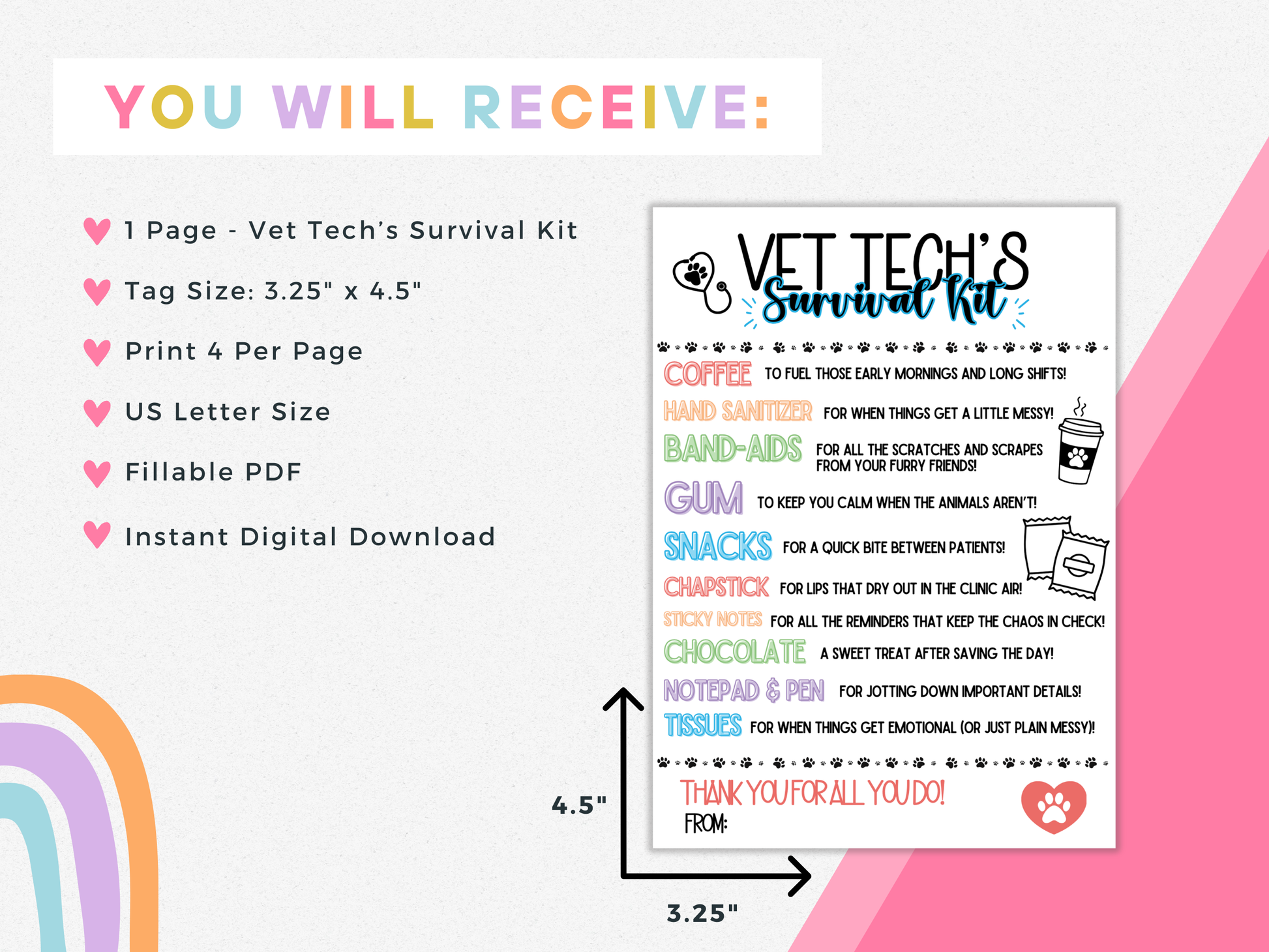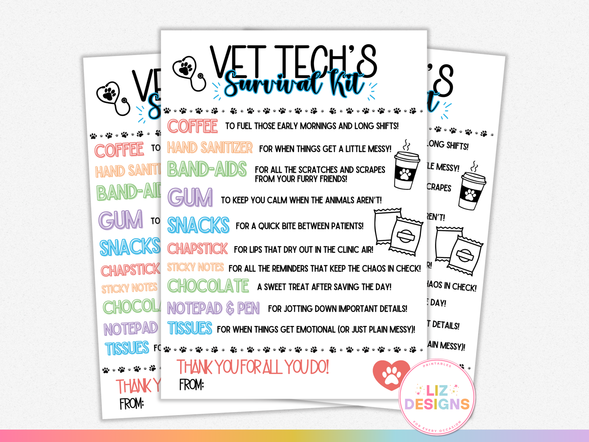 Looking for the perfect way to show appreciation to a hardworking vet tech? This πππ ππππ ππππππππ πππ πππ is a fun, printable way to personalize any gift! With a humorous and practical touch, this tag is designed to brighten their long shifts and show how much you care. Simply print, trim, and attach to a survival kit packed with essentials theyβll love. Perfect for Vet Tech Appreciation Week, graduation, or a thoughtful thank you gift!