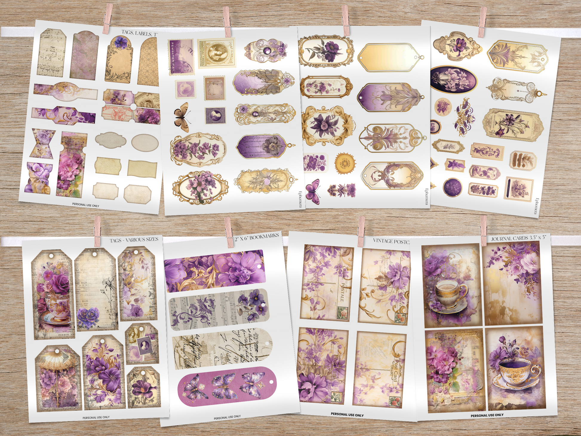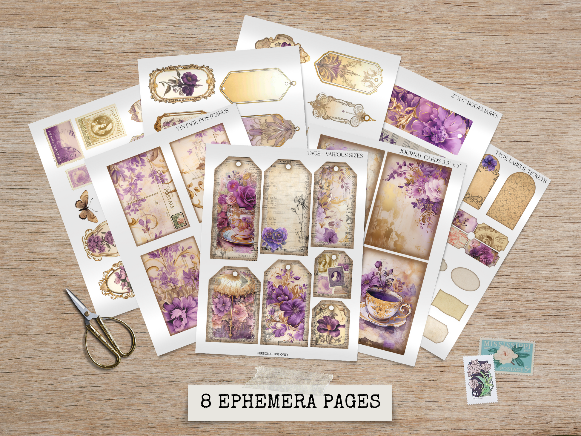 ๐ x8 Pages of Ephemera - Tags, Journal Cards, Bookmarks, Scrap Papers, Post Cards, etc.