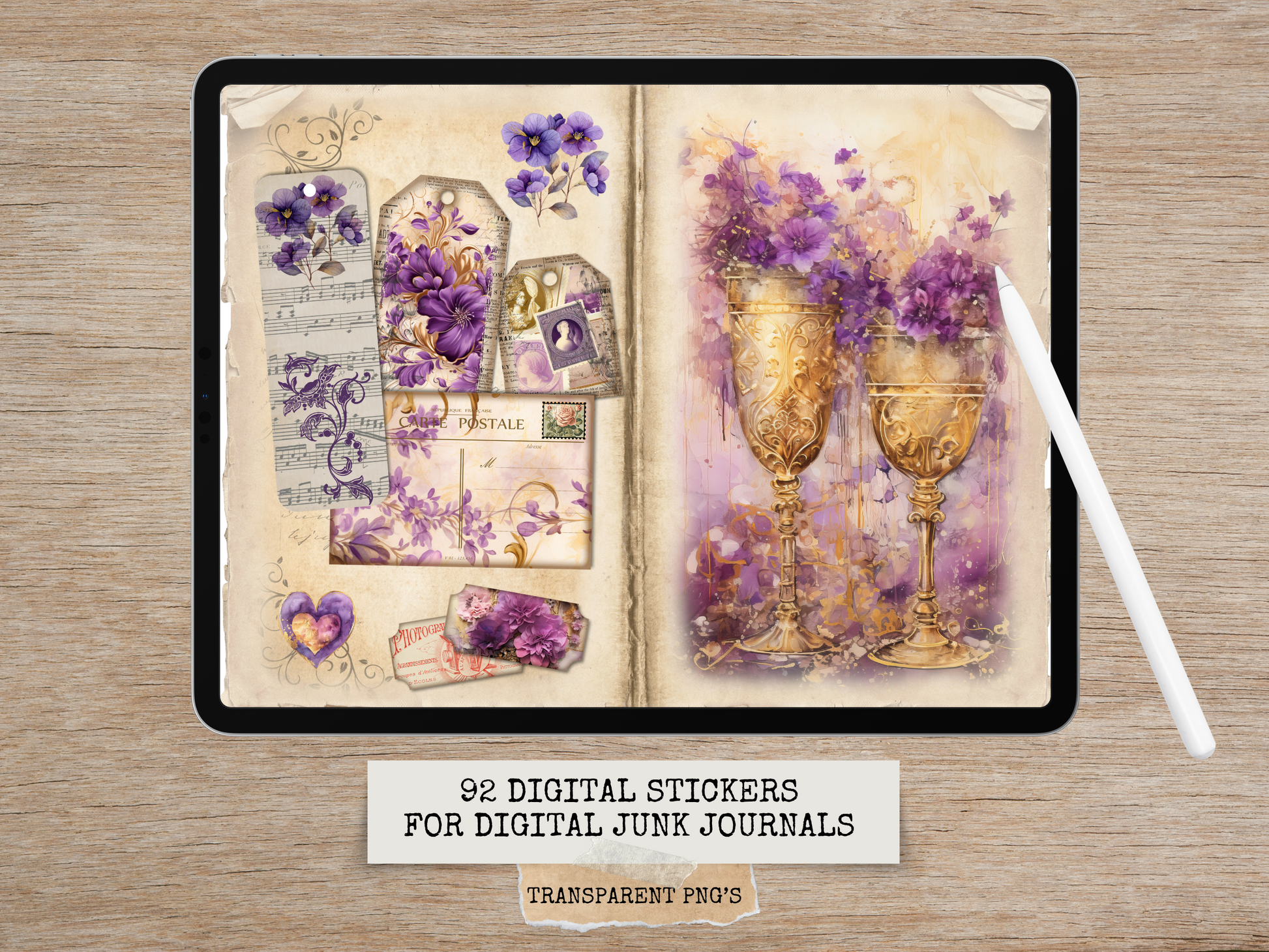 ๐ x92 Digital Stickers - Assorted ephemera and embellishments are available as transparent PNG's for digital use in digital junk journals, planners, scrapbooks, memory books and more!