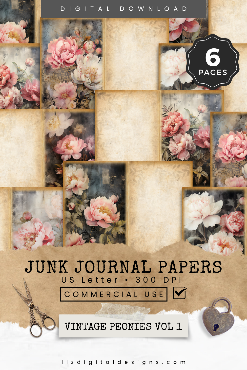Vintage Peonies Vol 1 - Junk Journal & Scrapbooking Papers