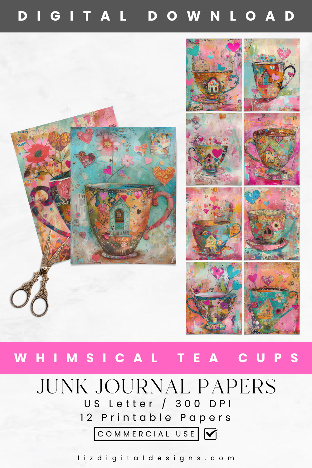 Create stunning junk journals with these beautiful πππππππππ πππ ππππ ππππ πππππππ ππππππ! This set includes 12 unique printable pages, perfect for adding a touch of whimsical charm to scrapbooking, journaling and crafting projects. Each page features charming illustrations of tea cups and cozy houses, creating a delightful and imaginative theme with ideal uses for junk journals, scrapbooking, card making, mixed media art and more!Β