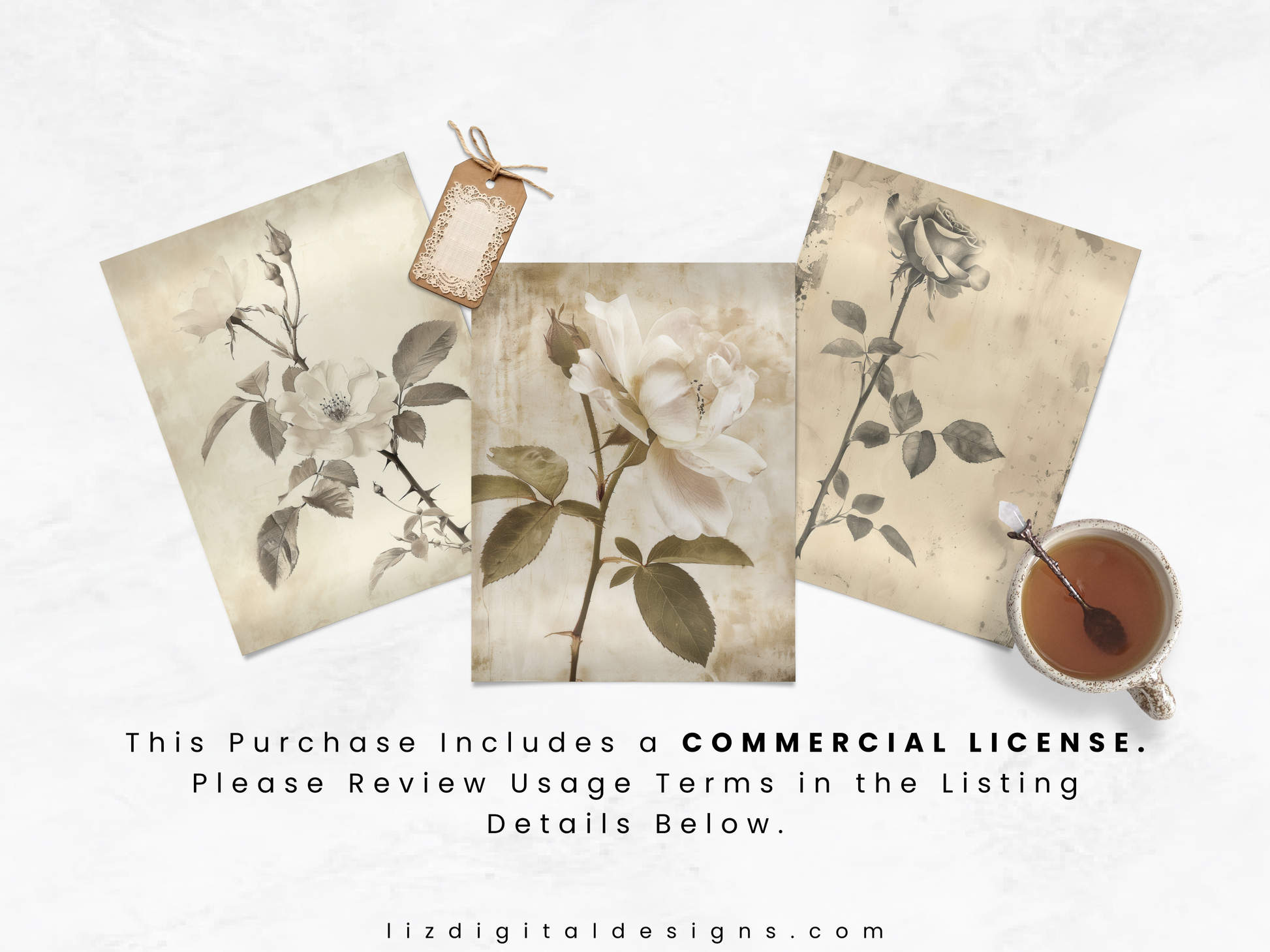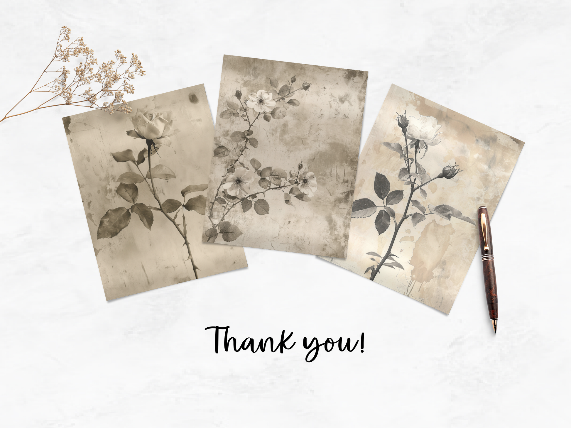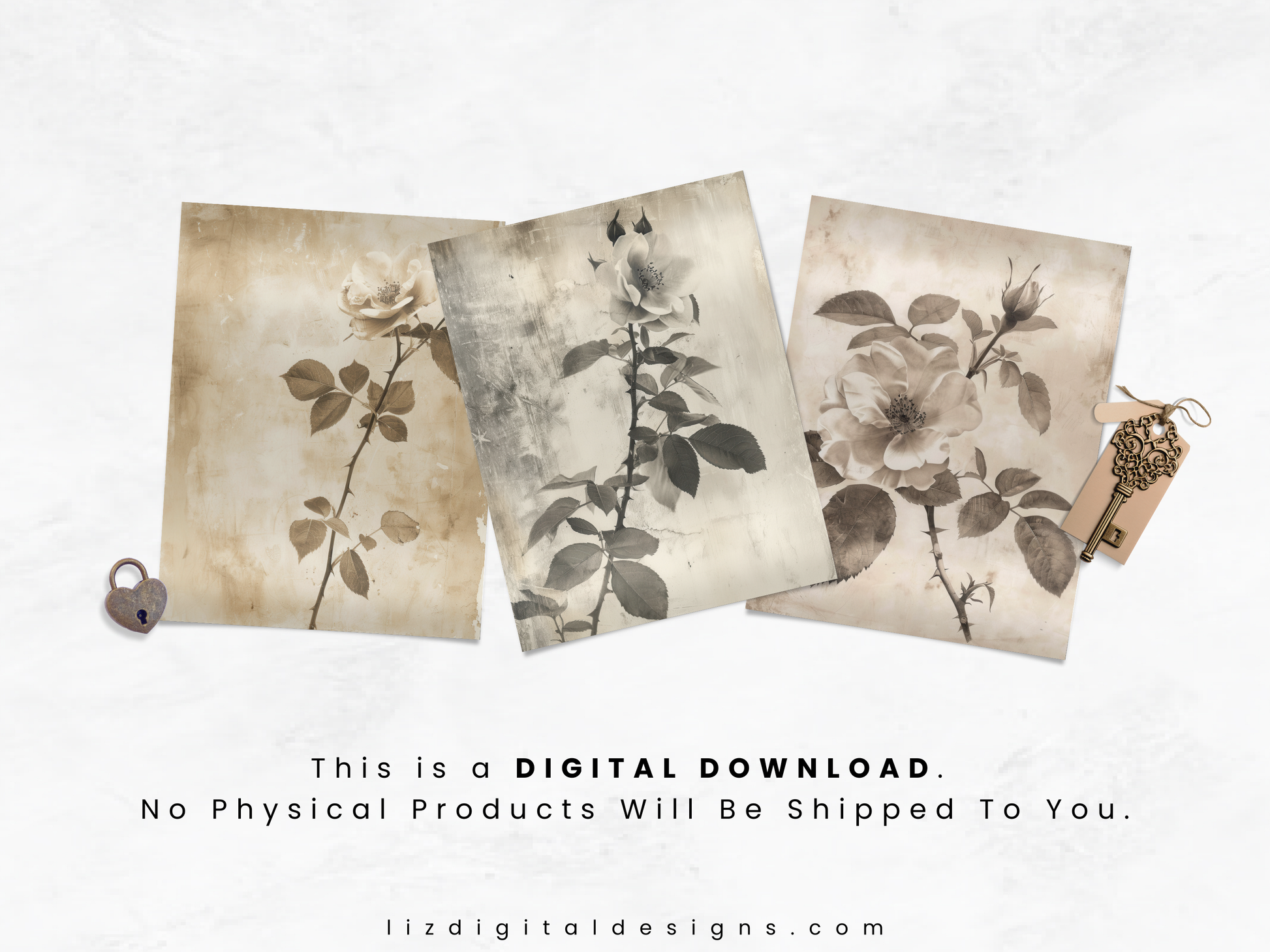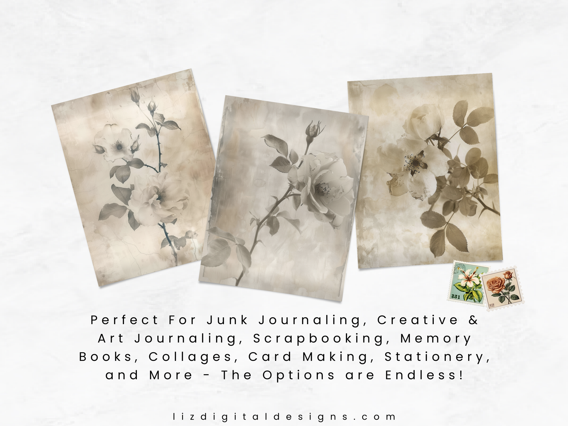 Create stunning junk journals with these beautiful ππππ πππππ πππππππ ππππππ! This set includes 12 unique printable pages, perfect for adding a touch of whimsical charm to scrapbooking, journaling and crafting projects. Each page features charming illustrations of wild roses in an elegant monochromatic color scheme, creating a delightful and imaginative theme with ideal uses for junk journals, scrapbooking, card making, mixed media art and more!