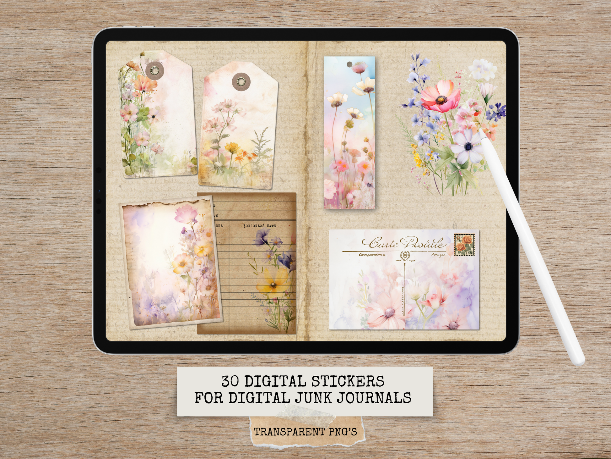 Unleash your creativity with the ๐๐ข๐ฅ๐๐๐ฅ๐จ๐ฐ๐๐ซ๐ฌ ๐๐ฎ๐ง๐ค ๐๐จ๐ฎ๐ซ๐ง๐๐ฅ ๐๐ข๐ญ! This kit is perfect for creating a unique scrapbook or DIY junk journal with its beautiful floral-themed papers and pastel colors. It's packed with journal pages, decorative papers, ephemera, pockets, envelopes and more! Plus, I've added a digital sticker pack for enthusiasts of digital junk journaling and scrapbooking!ย