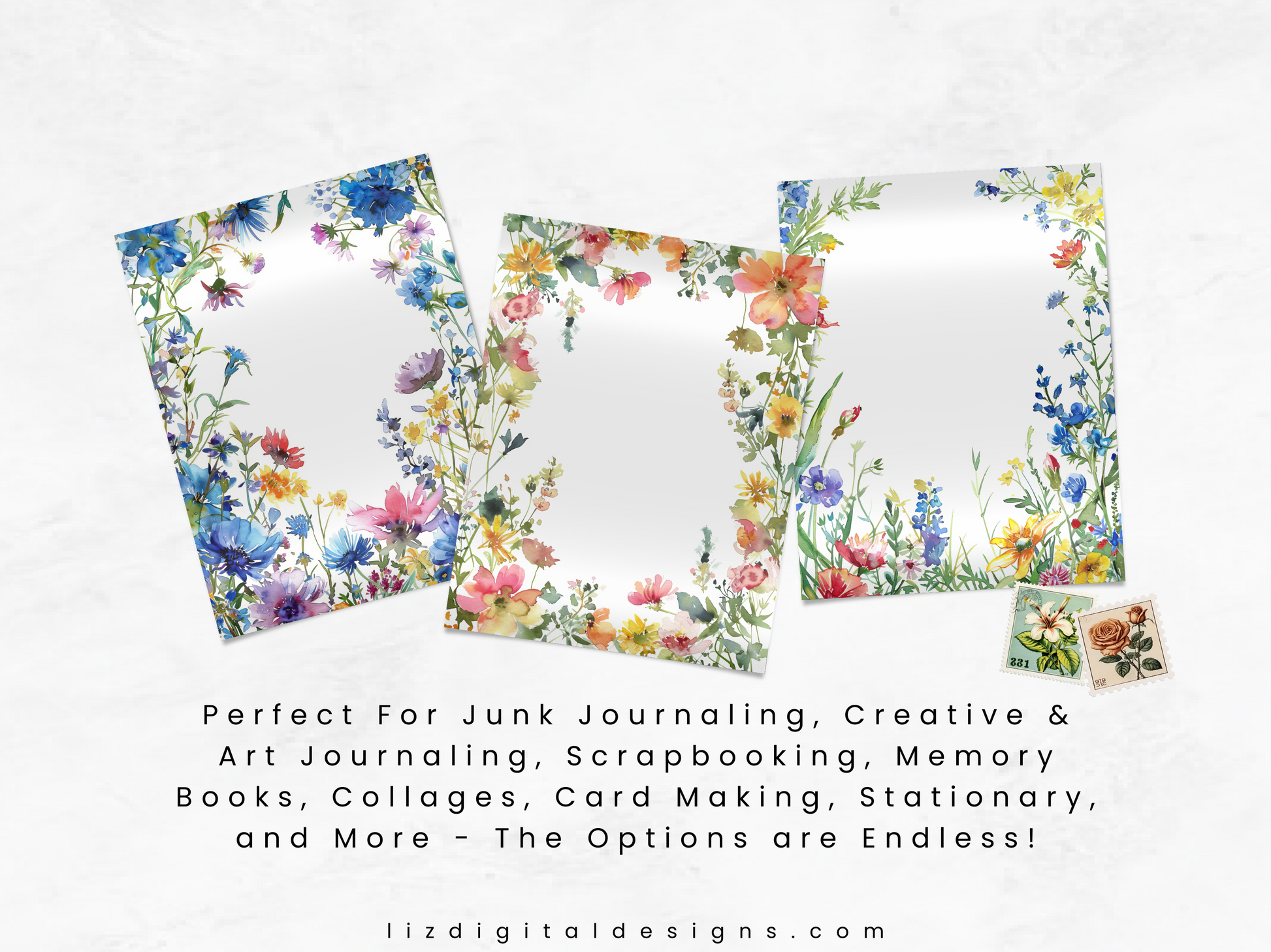 Create beautiful and unique junk journals with the Wildflowers Junk Journaling Papers Kit! This set features a whimsical collection of wildflowers designs, perfect for adding a touch of floral charm to your journal pages. Whether you're a junk journal enthusiast, avid scrapbooker, or a passionate creative and art journaler, these versatile papers are designed to inspire. Use them in your collages, stationery, cards, invitations, scrapbooks, memory books, journals and planners today!