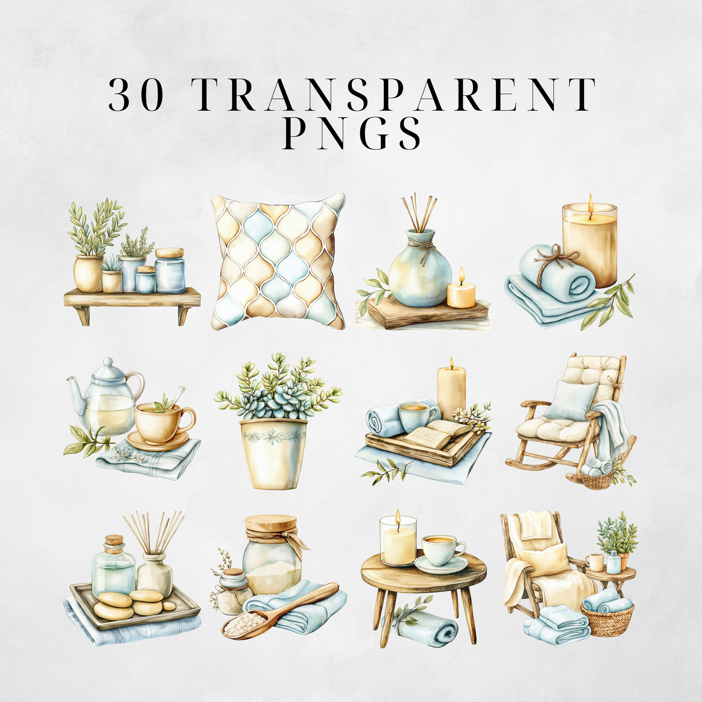 Relax and create with this beautiful ππππππ πππ πππππππ ππππ! Featuring 30 high-resolution transparent PNGs, this set is perfect for digital stickers, scrapbooking, printable stickers, card making, self care printables, digital paper crafts, and more. With cozy spa elements like chairs, towels, candles, potted plants, and self-care essentials, this clipart collection brings a serene winter spa vibe to all your creative projects.Β