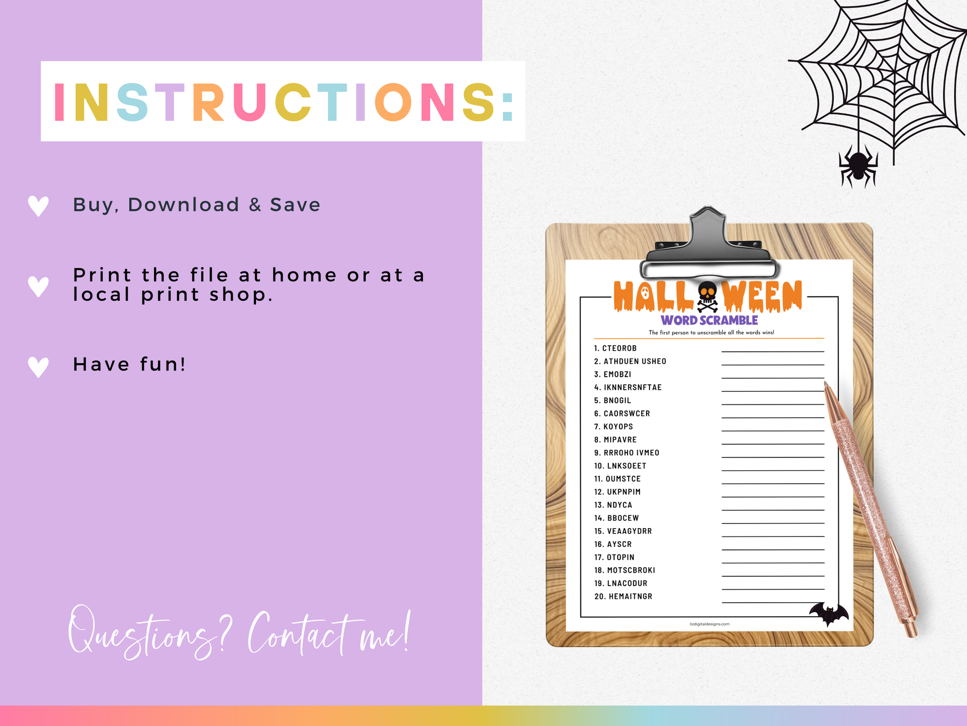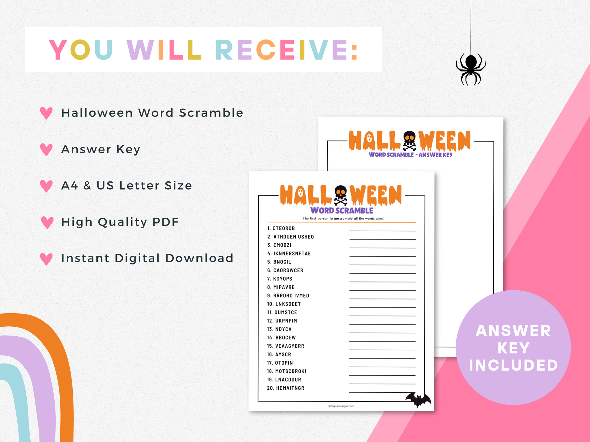 Get into the Halloween spirit with this fun ππππ ππππππππ: πππππππππ πππππππ! Perfect for parties, classrooms, or family gatherings, it comes with an answer key and is available as an instant download in both US Letter and A4 sizes. Just print and play it at your next Halloween-themed event!