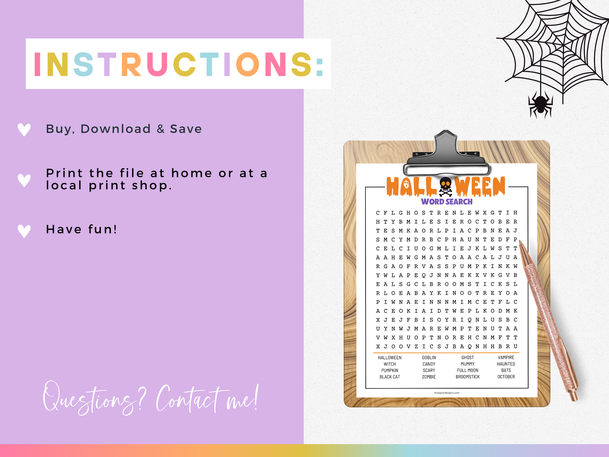 π Distribute the Word Search sheets and find the Halloween-themed words as fast as you can!