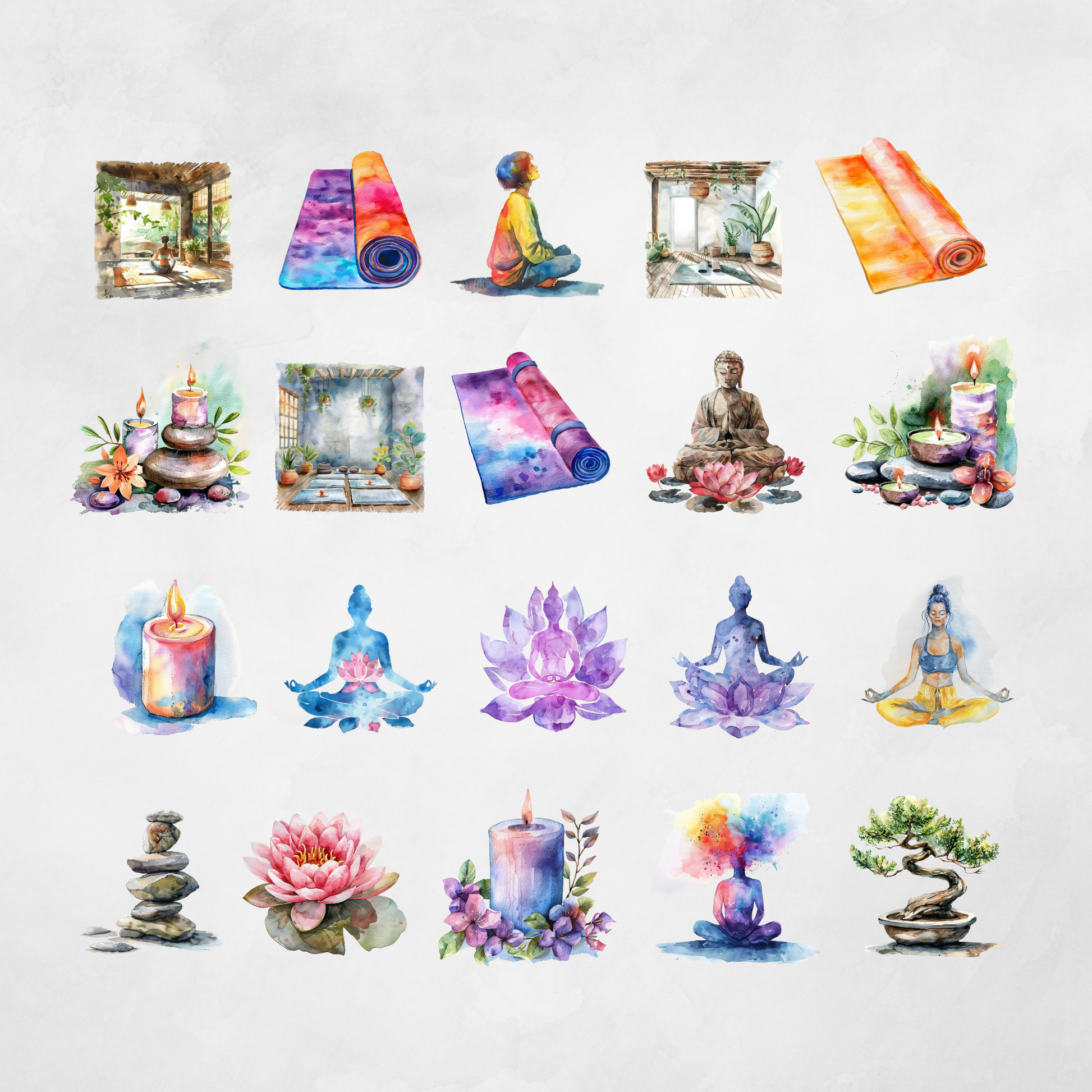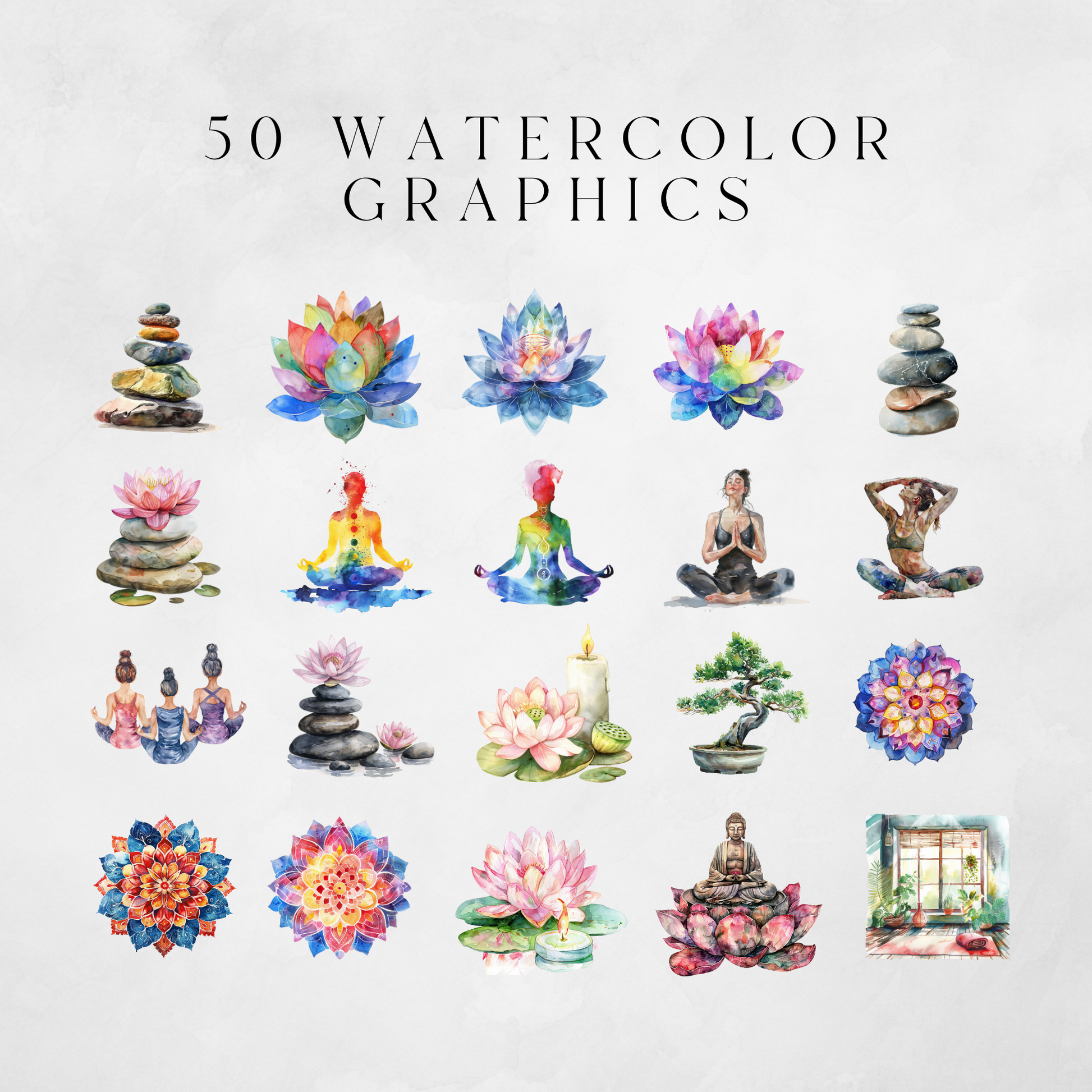 The ππ¨π π ππ₯π’π¬π¬ ππ₯π’π©ππ«π ππππ€ consists of 50 transparent PNG images which showcase a range of yoga-themed illustrations such as yoga poses, lotus flowers and tranquil scenes. These versatile illustrations are perfect for both personal and commercial projects such as creating greeting cards, invitations, decorations, scrapbooking, journals, tee shirt designs, PODs and more!